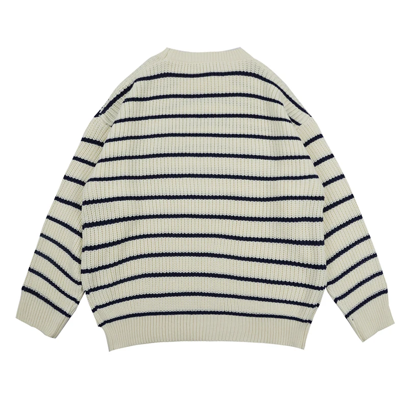Мужской свитер в полоску с длинным рукавом и круглым вырезом Мужская одежда - купить