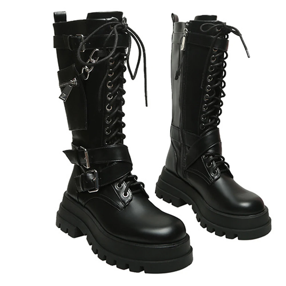 Купить Женские мотоциклетные ботинки BONJOMARISA брендовые дизайнерские на платформе в
