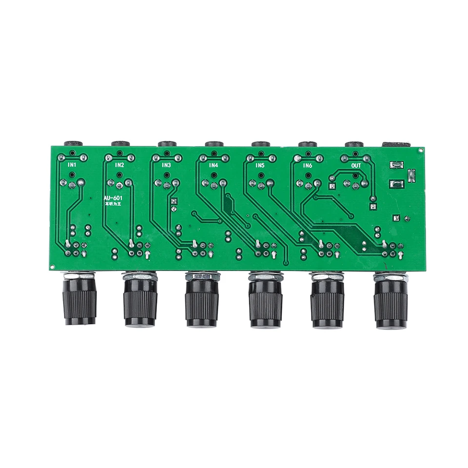 Шесть стерео аудио входа смешаны в стереовыход, который может непосредственно водить наушники или подключения к усилителю мощности, 3,5 мм разъем для наушников, И потенциометра, чтобы индивидуально контролировать громкость каждого канала, не влияя друг на друга.
