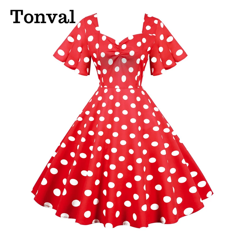 Отзывы о Женское винтажное платье в горошек Tonval летнее стиле 50-х годов с вырезом сердечком