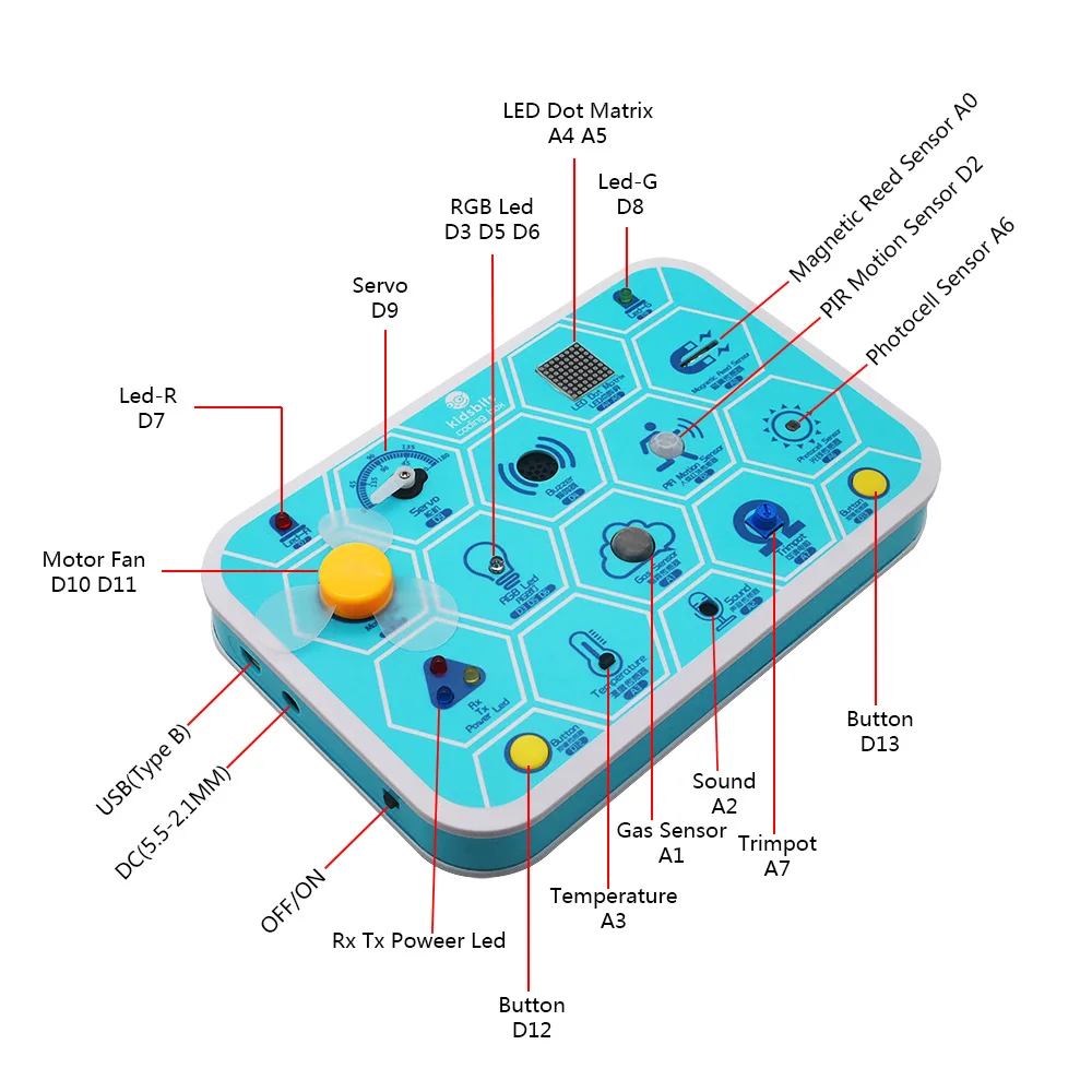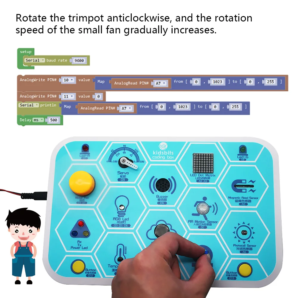 Инструкция:Https://wiki.kidsbits.cc/kd0001-kidsbits-multi-purpose-coding-box-kit/
