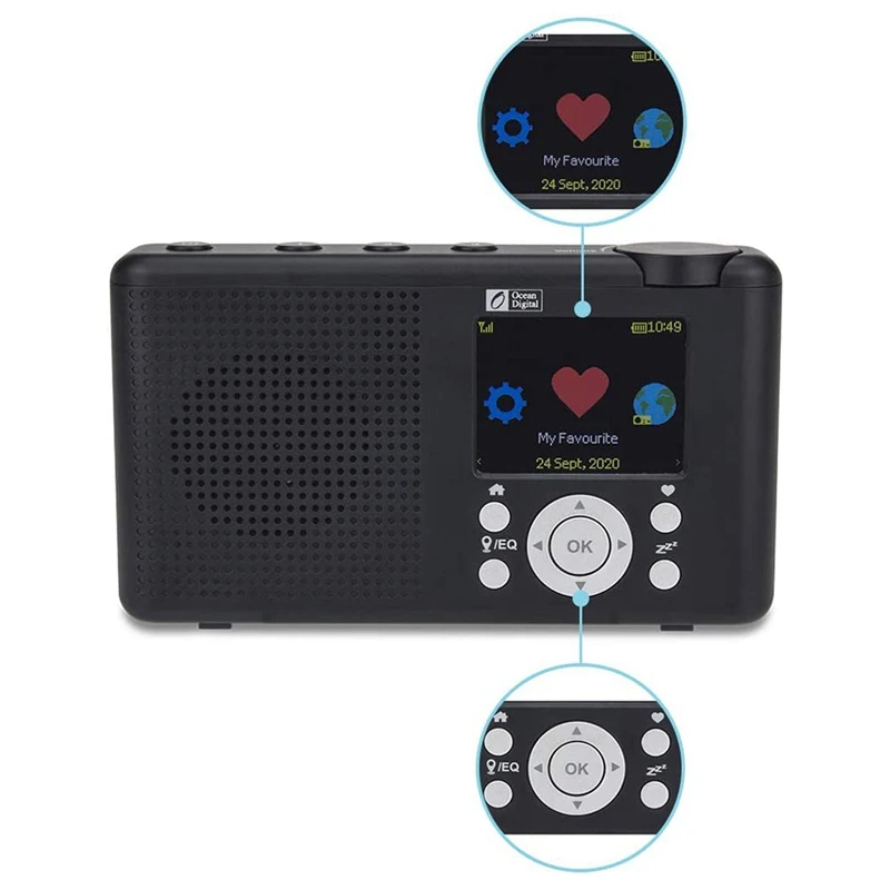 4. WR-23F интернет-радио тюнер обеспечивает аудио развлечения на ходу с его внутренним литий-ионным аккумулятором 2000 мАч, обеспечивая часы воспроизведения. Различные режимы работы для удовлетворения различных желаний, начиная от воспроизведения одной из тысяч радиостанций по всему миру, потокового их контента через Интернет до сбора личных музыкальных файлов, потокового по сети Wi-Fi.