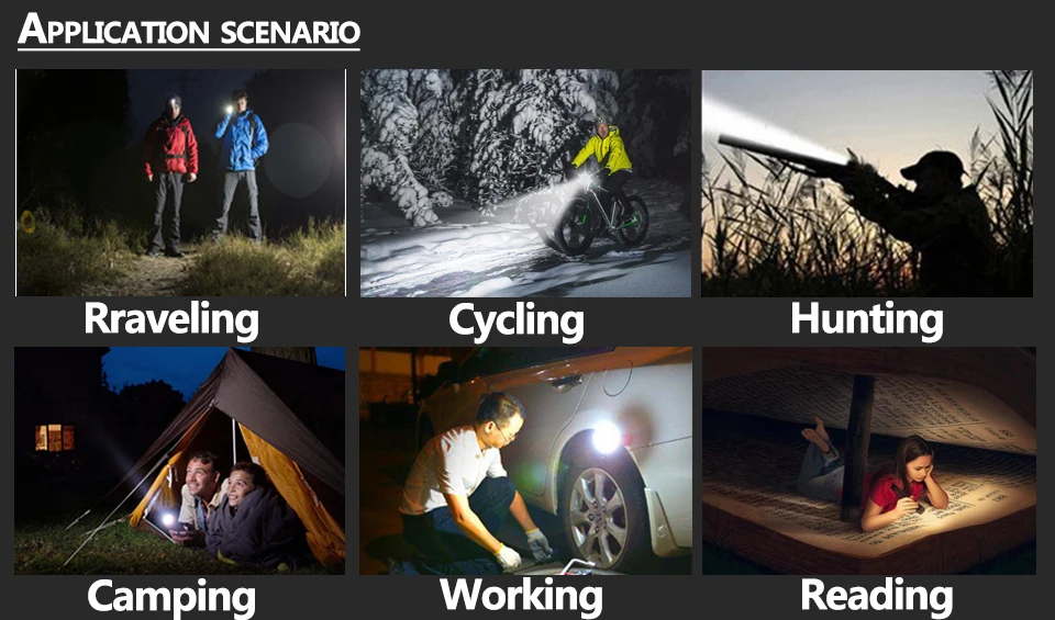 Подходит для большинства помещений, таких как обслуживание дома и активного отдыха, как кемпинг, рыбалка, туризм, ночной полет, чтение карт, парусный спорт, кавинг и охота.