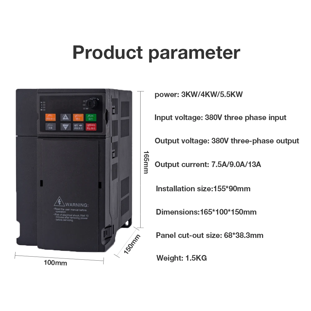 Этот Частотный Привод изготовлен из высококачественного материала корпуса, термостойкого и огнезащитного. Гуманизированный дизайн клавиатуры, прост в эксплуатации. Цифровой экран позволяет легко читать. Высокоэффективный вентилятор имеет лучший эффект рассеивания тепла.