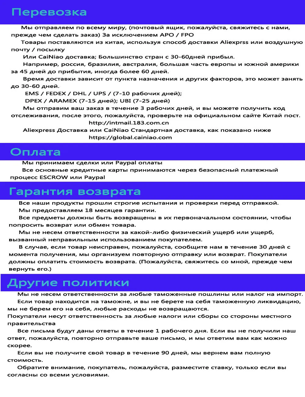 Если покупатель не соглашается, пожалуйста, свяжитесь с нами и оставьте свой адрес электронной почты, прежде чем сделать заказ