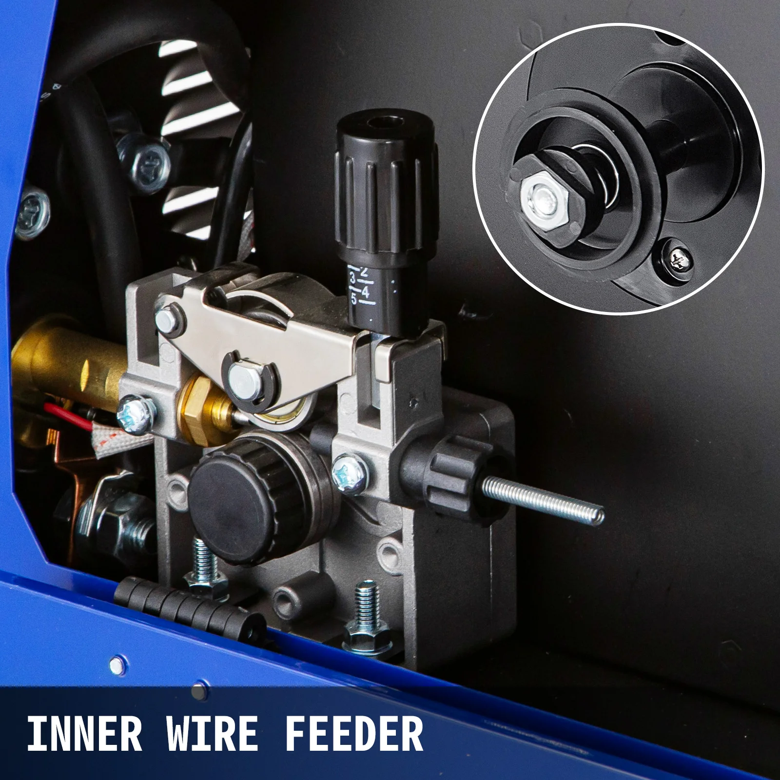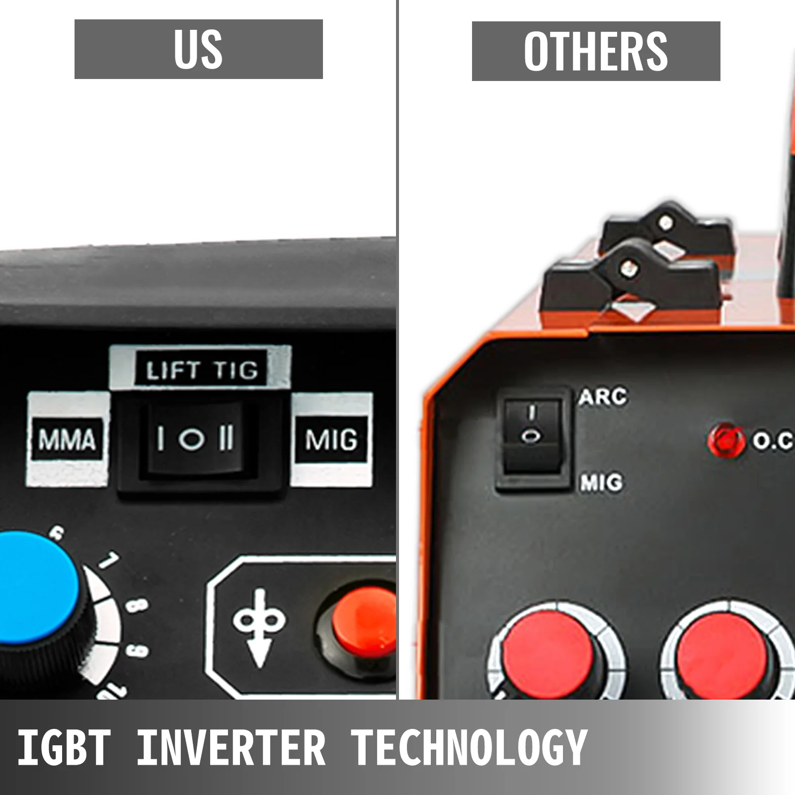 Использование высококачественной интегрированной проволочной кормушки для обеспечения бесперебойной подачи проволоки, регулируемого сварочного напряжения и тока. Полноразмерная MIG платформа, 60% Рабочий цикл обеспечивает длительную сварку, плавную среднюю скорость и мощный большой двигатель.