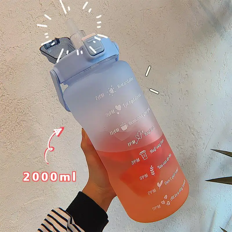Купить Бутылка для воды большой емкости 2 л с чехлом отскока напоминанием о времени