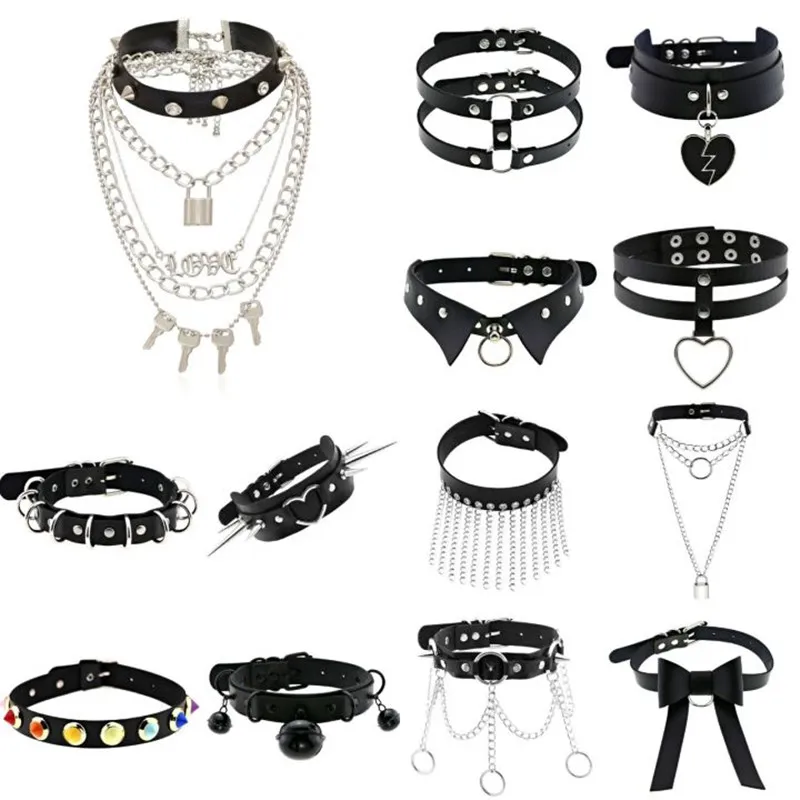 Новинка, Черное Кожаное колье-чокер в стиле гот-панк в стиле Харадзюку для женщин и мужчин, металлическое Ювелирное Украшение для косплея, вечевечерние, подарки на бондаж аксессуары в готическом стиле