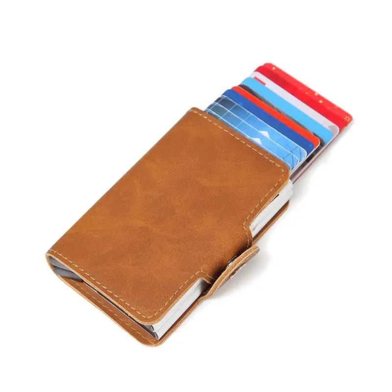 Отзывы о Двойной алюминиевый кожаный держатель для кредитных карт Crazy Horse RFID-кошелек
