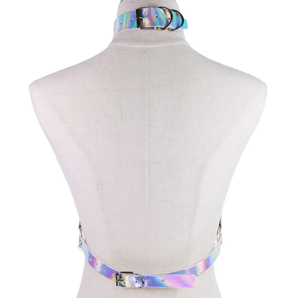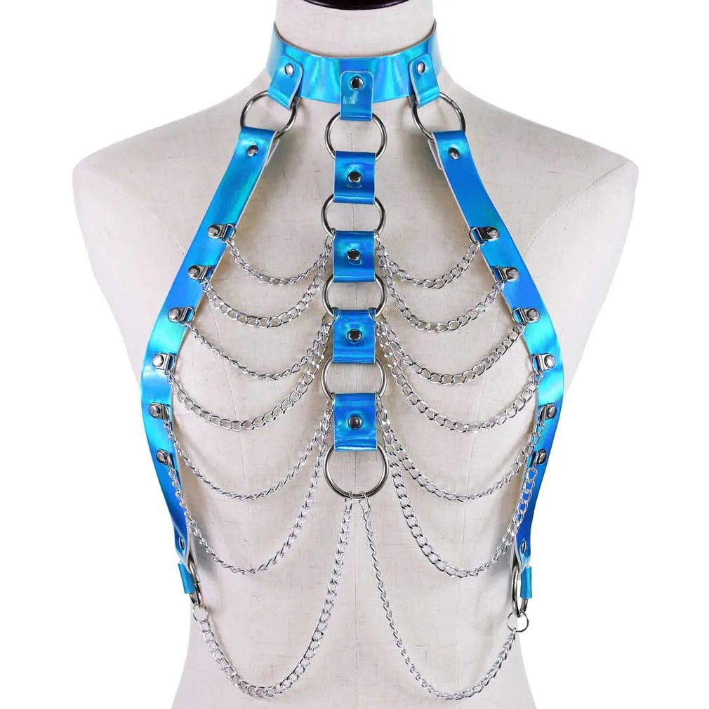 Готическая голографическая повязка на грудь Goth, топ в стиле панк, Женская Радужная цепочка на грудь, праздничный наряд, чокер, ювелирные изделия, вечерние украшения, БДСМ, тело, бондаж, сексуальное нижнее белье, кожаная цепочка, готический сундук, готический пояс для подвязки, бюстгальтер, эротический пояс, эмо