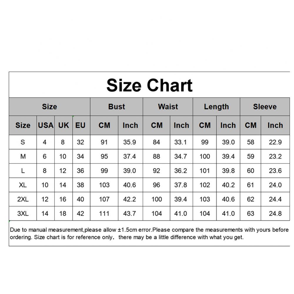 [Наш Размер M] Обхват груди: 95 см/37,4 ", обхват талии: 88 см/34,7", длина рукава: 59 см/23,2 ", Длина: 100 см/39,4" (прибл.)