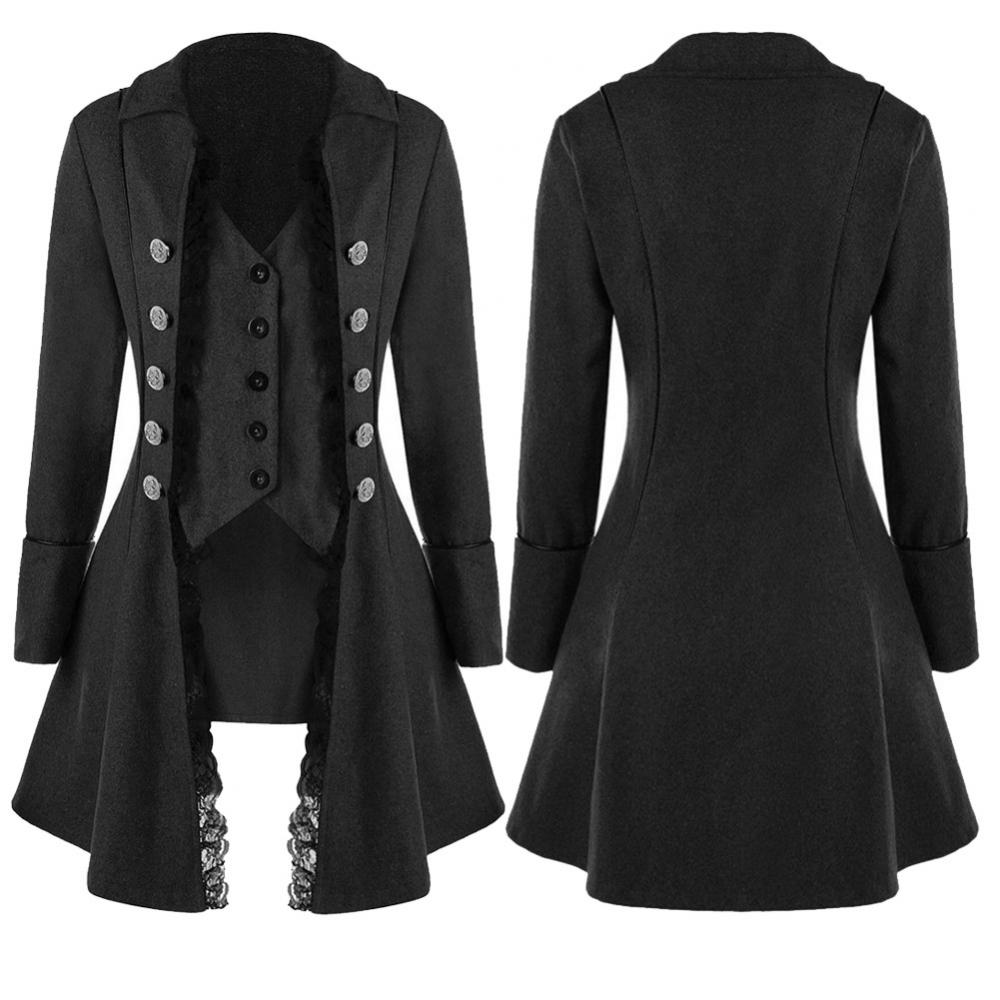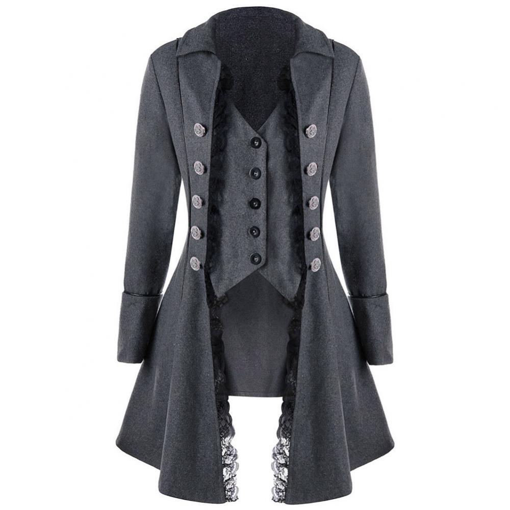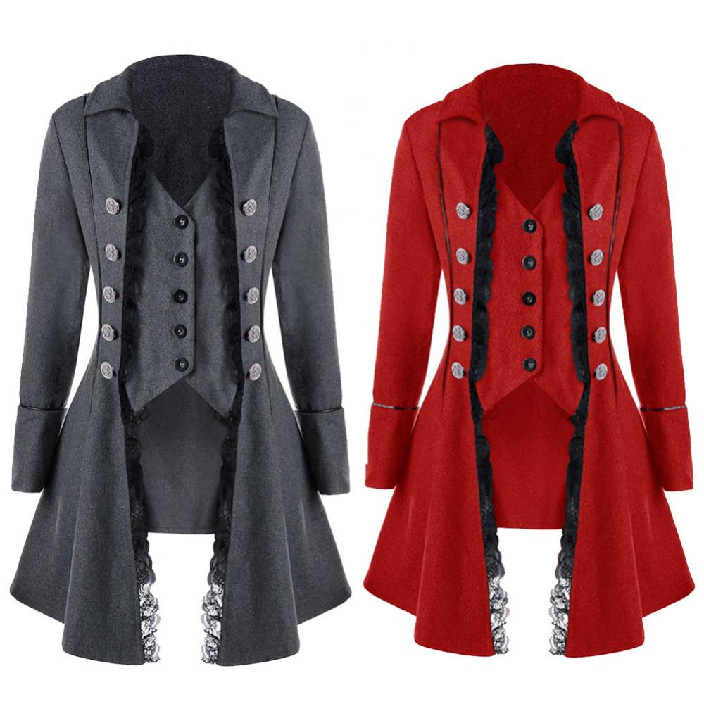 Женский Ретро кружевной длинный рукав пуговица фрак вечерний костюм средневековое пальто куртка