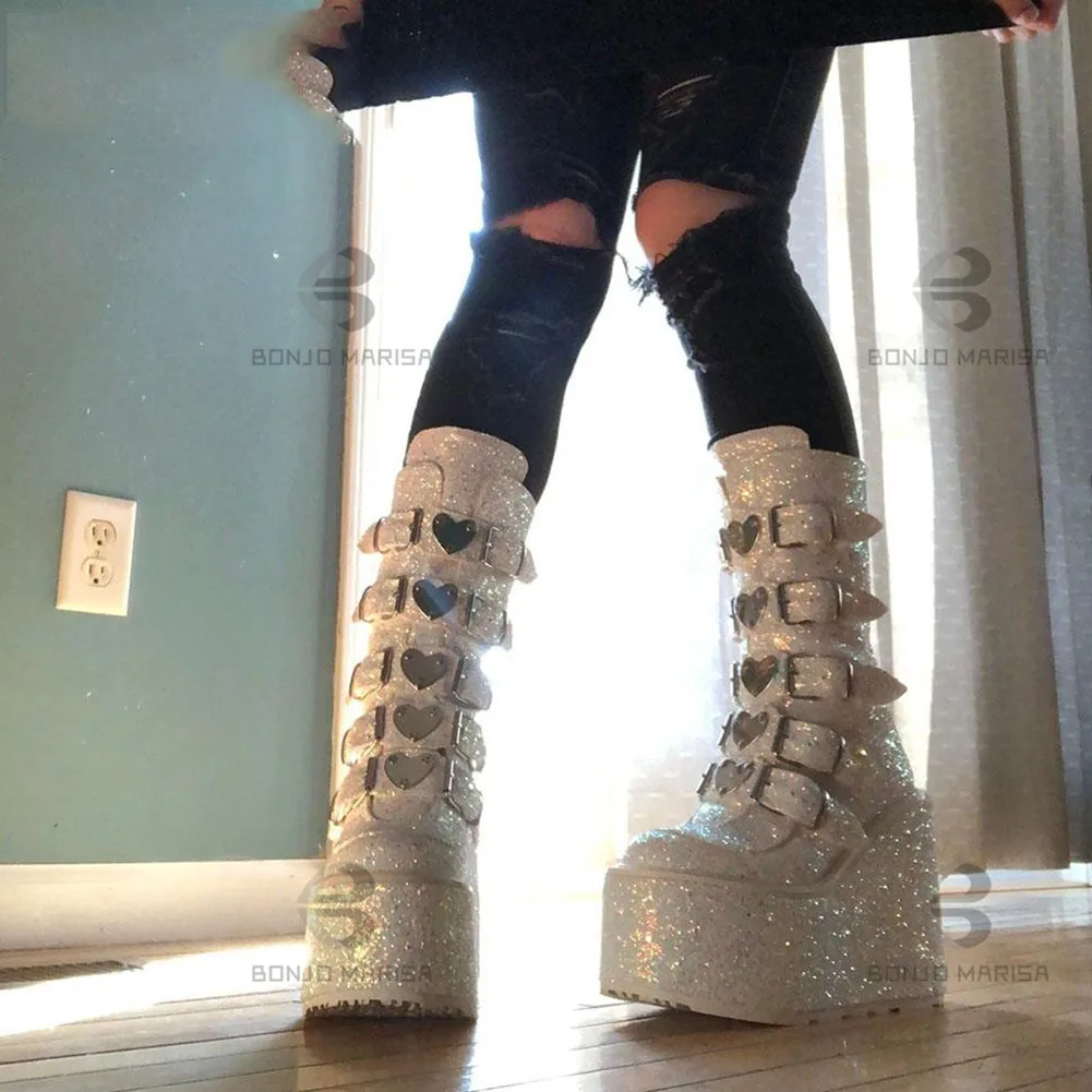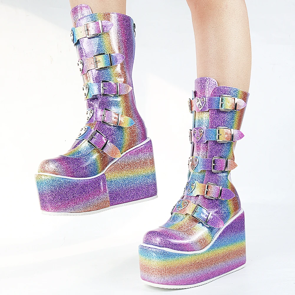 Купить Женские ботинки на танкетке с блестками молнии | Обувь