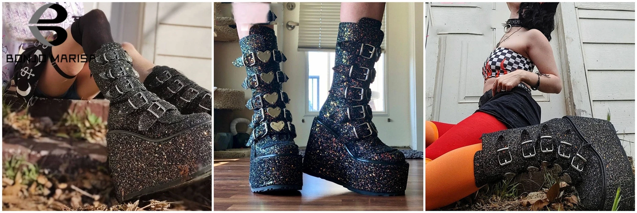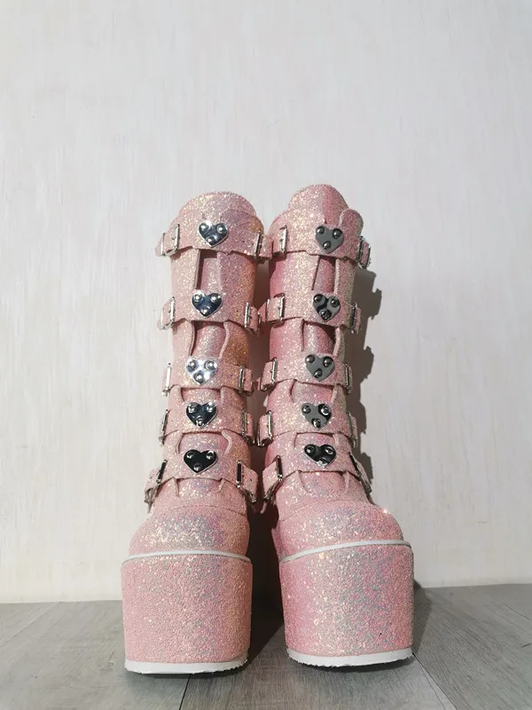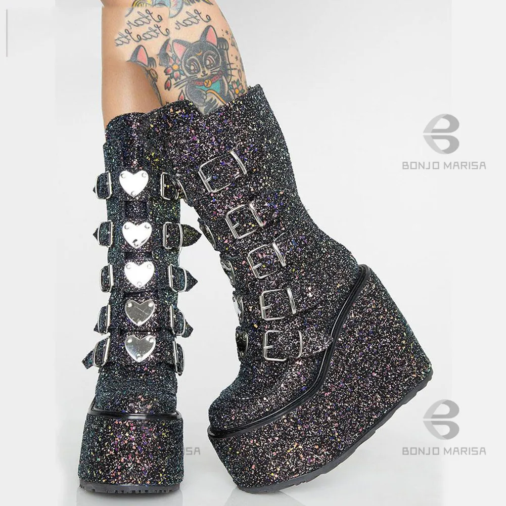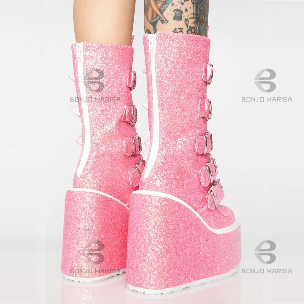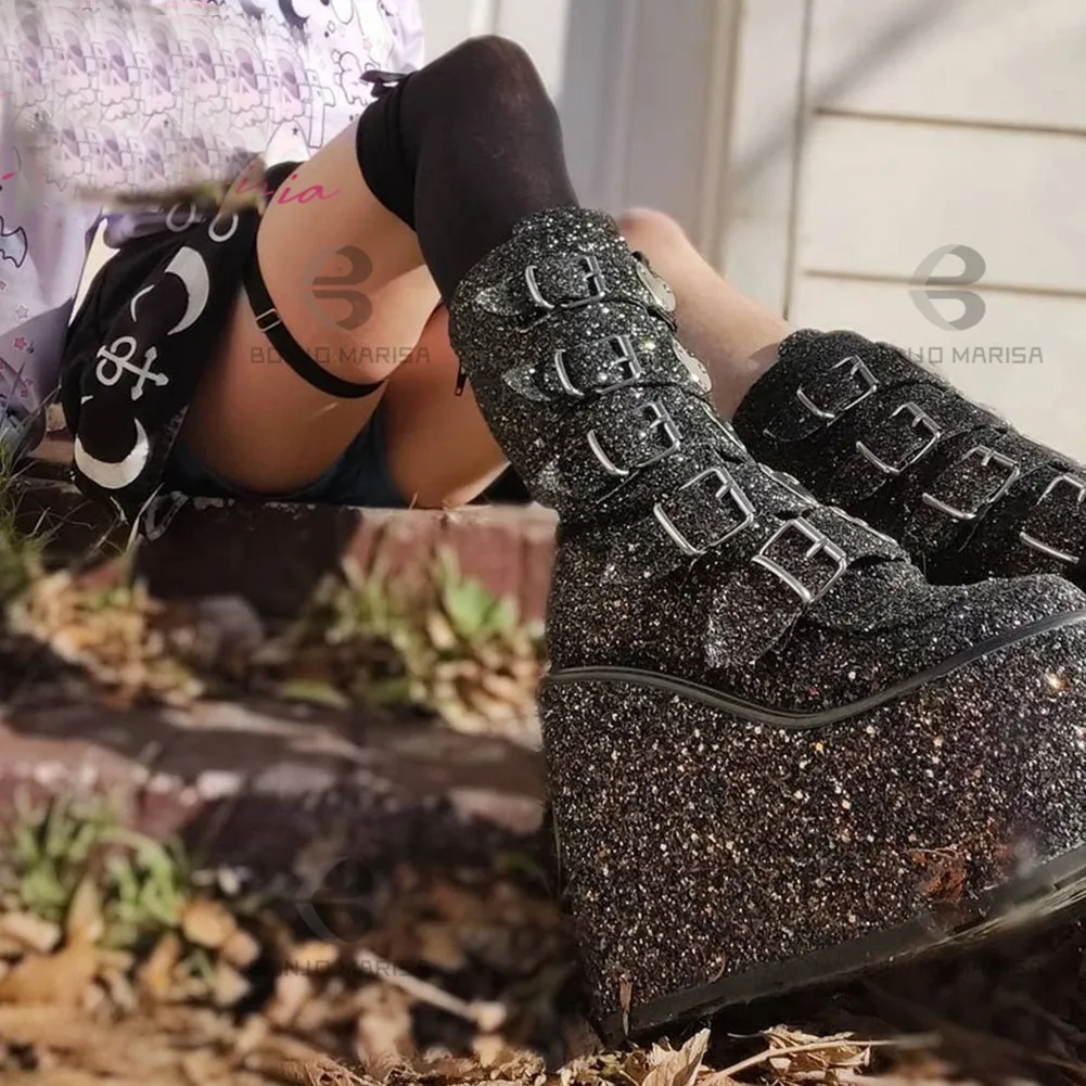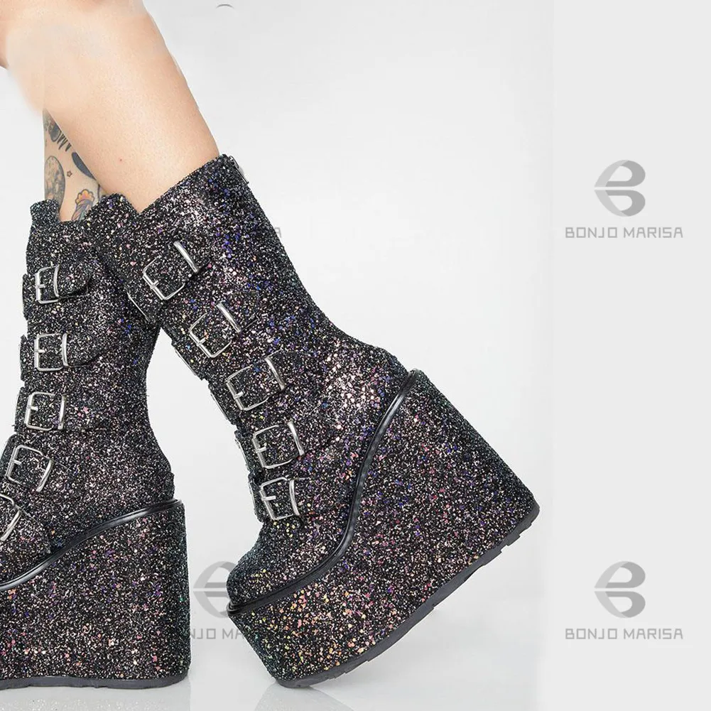 Женские ботинки на танкетке с блестками молнии Обувь - купить