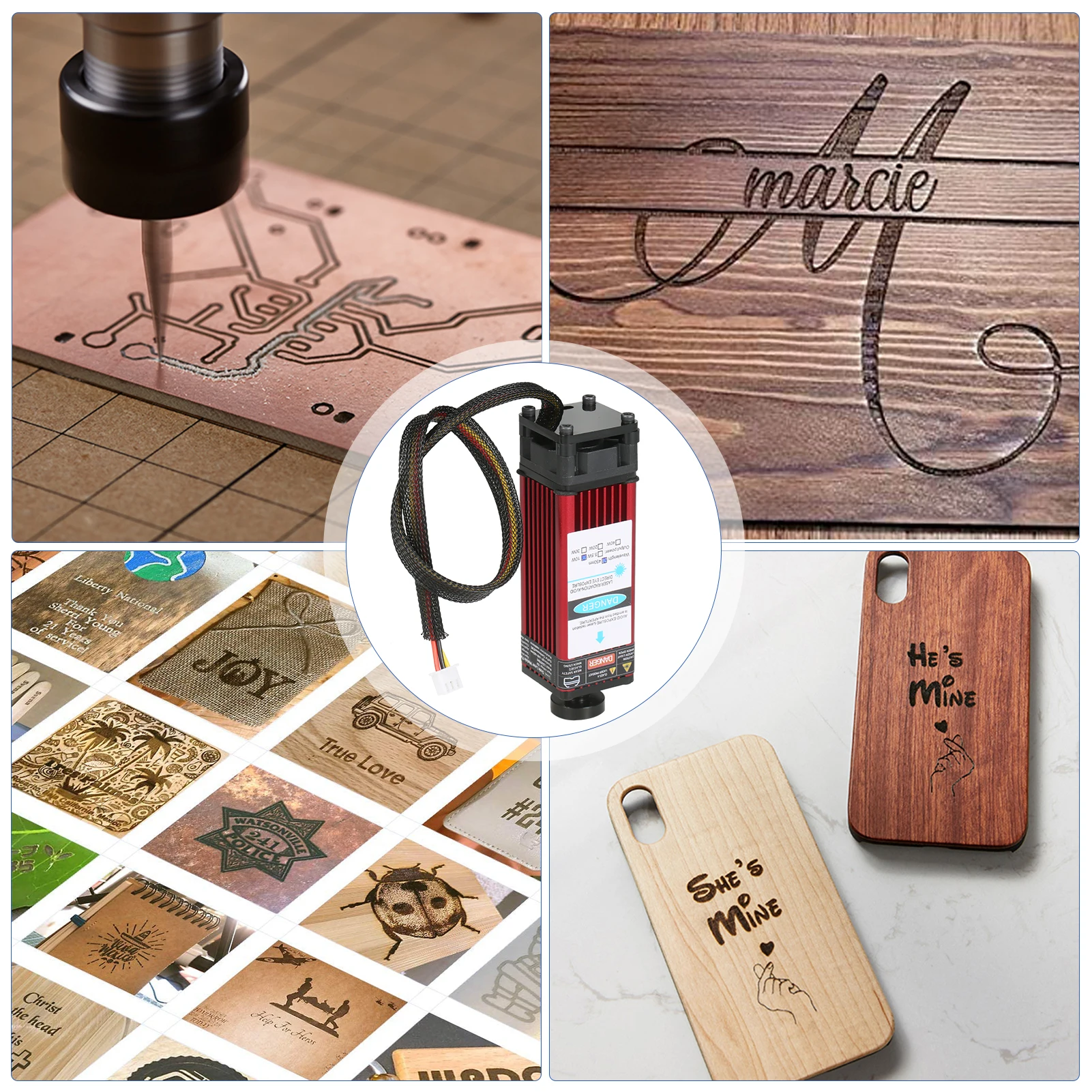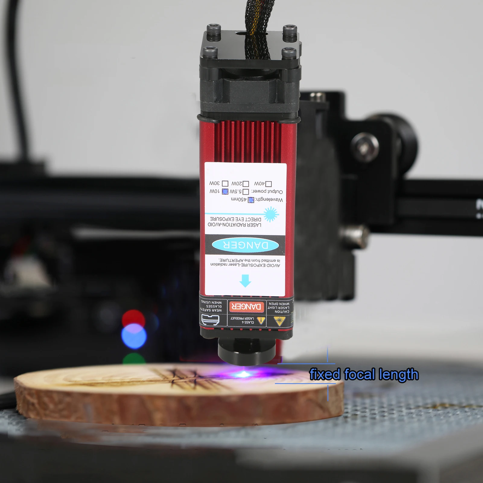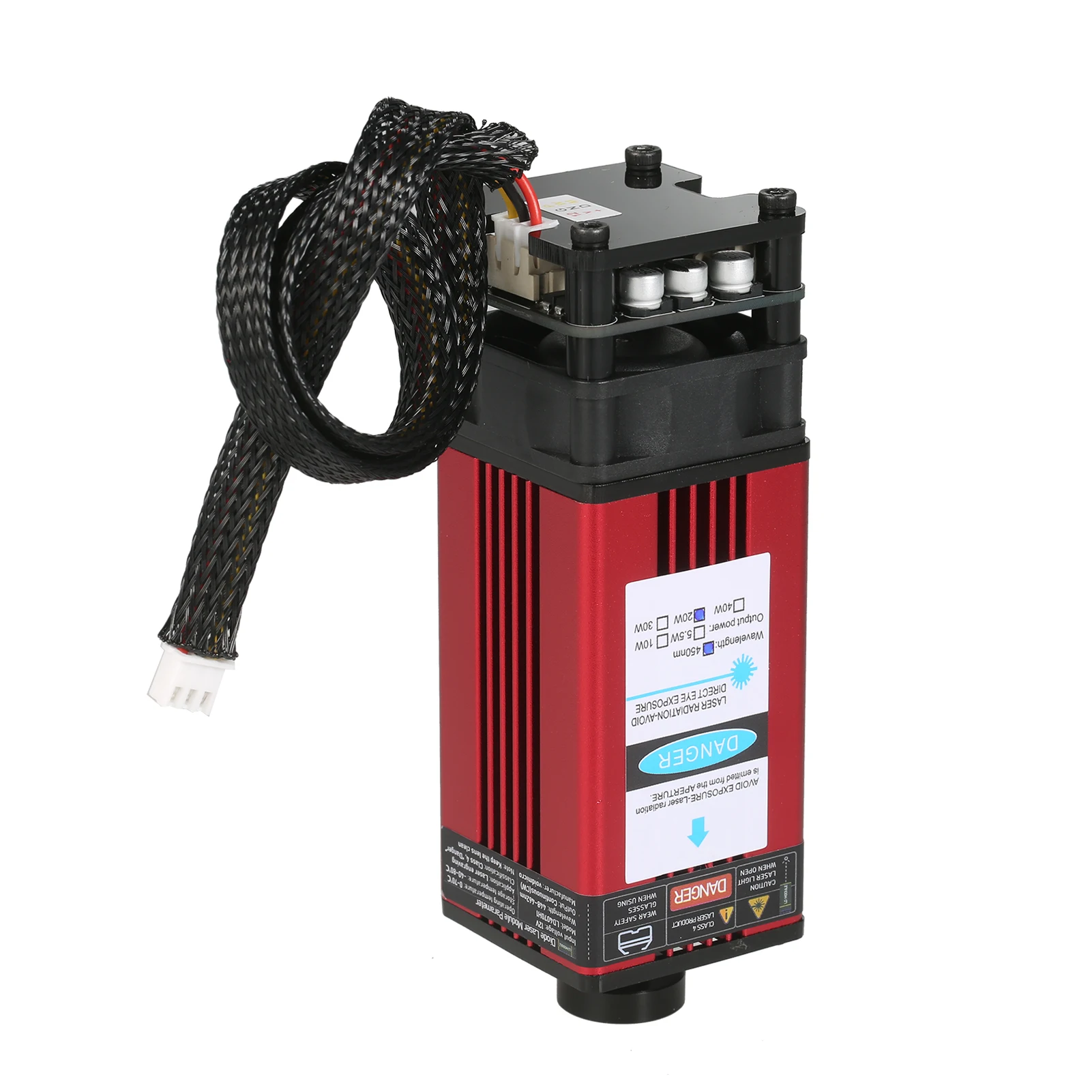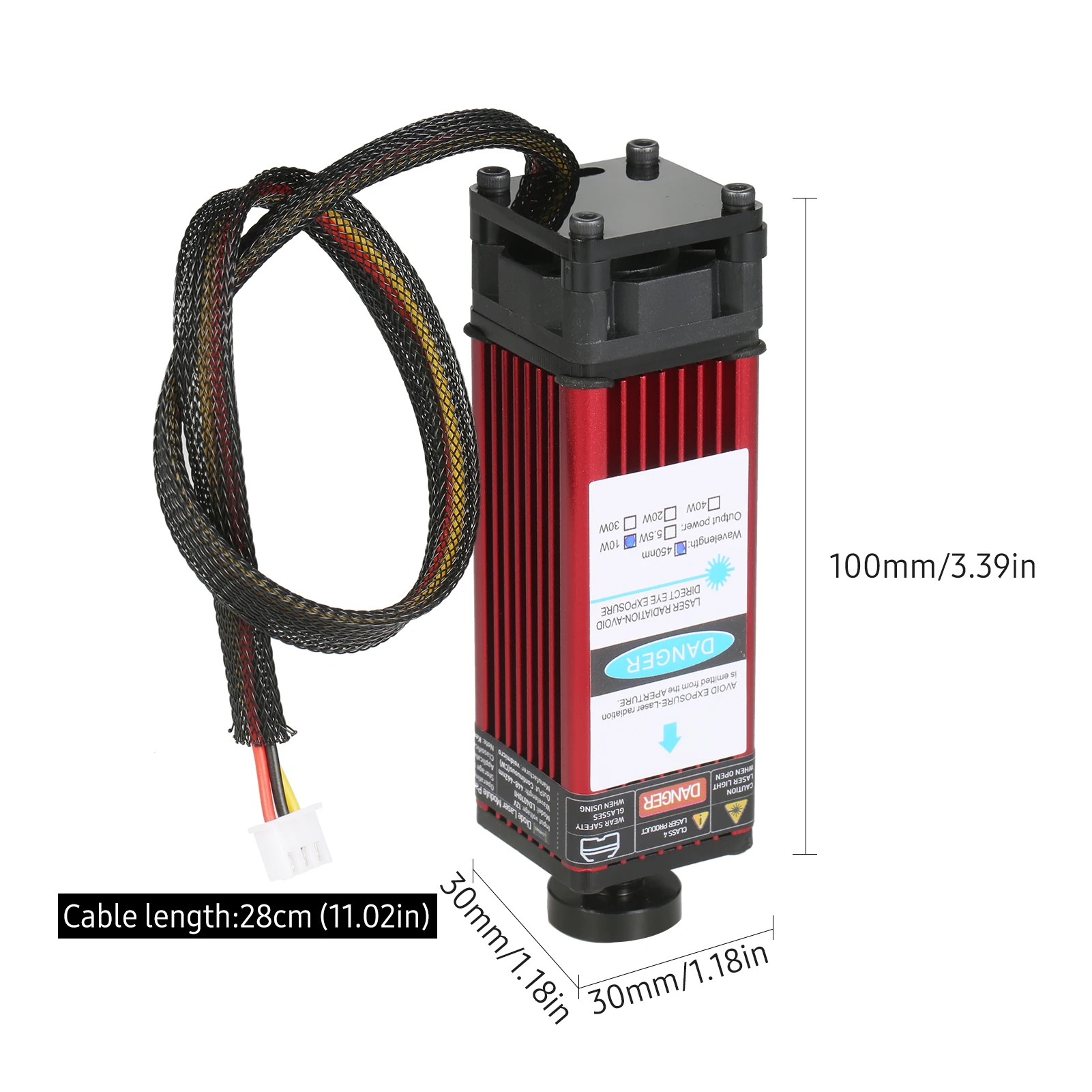 Профессиональный лазерный модуль, простой в установке, с более низкой потерей, обеспечивает длину волны 450нм, для эффективной, точной гравировки и резки пластика, дерева, бумаги и так далее, подходит для широкого спектра гравировальных машин.