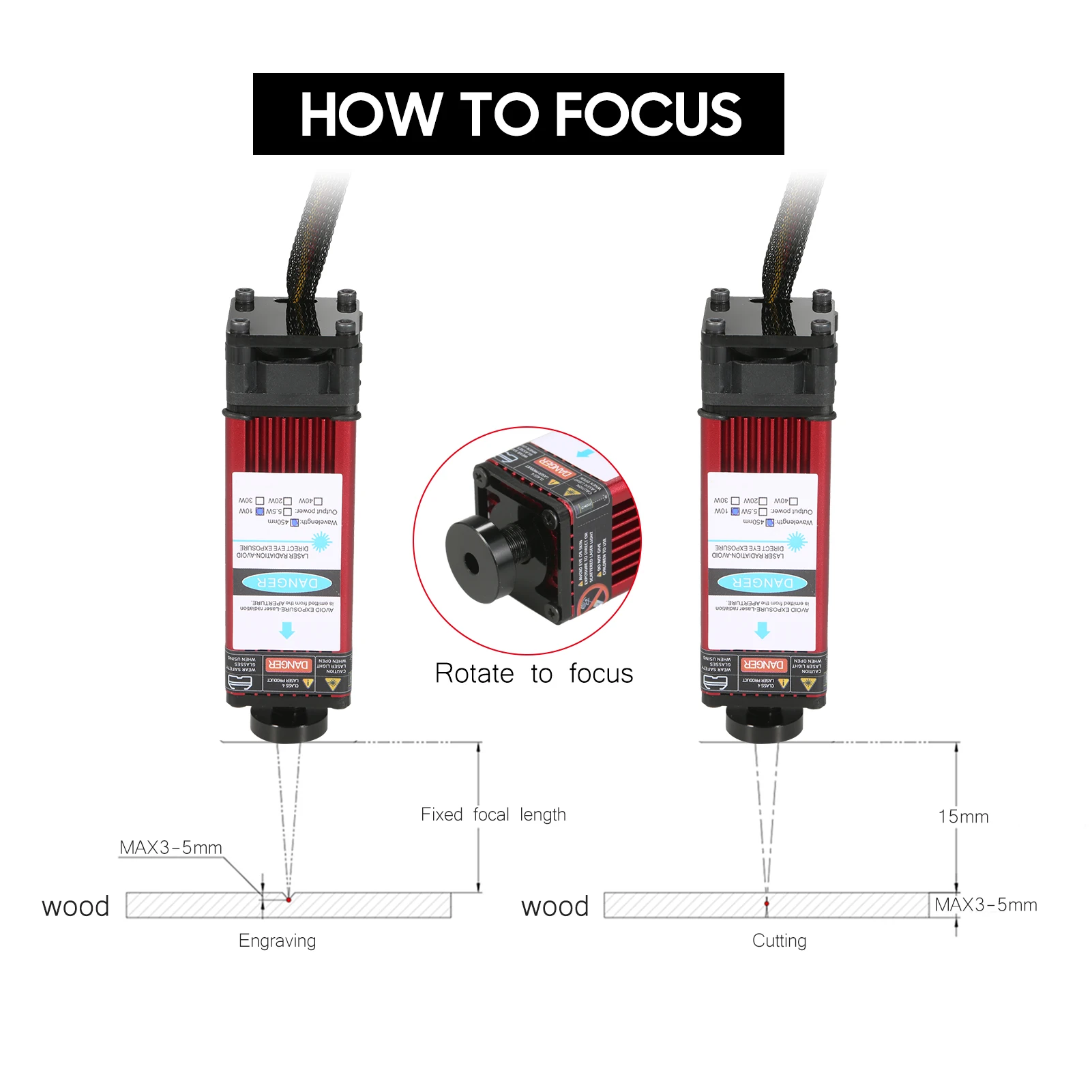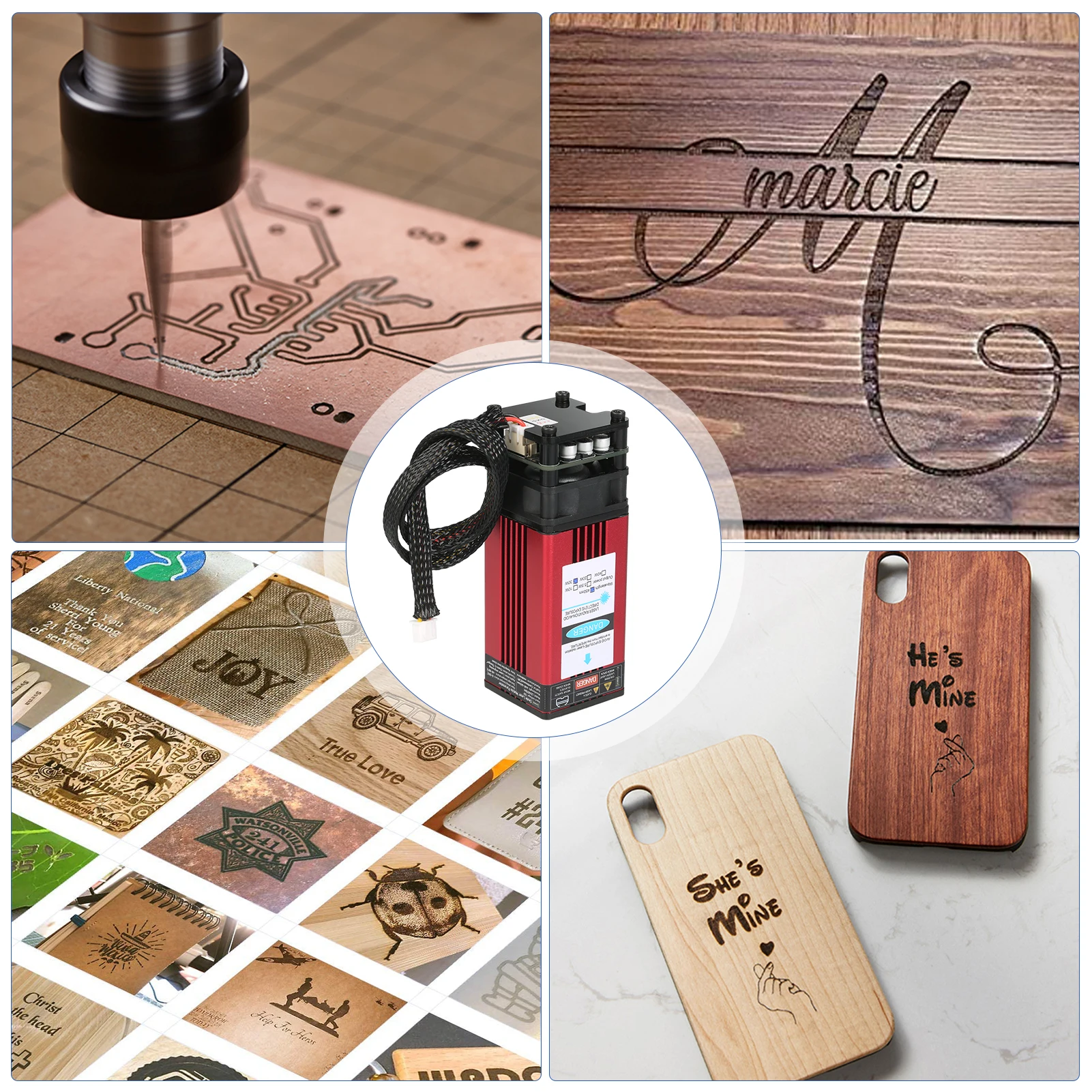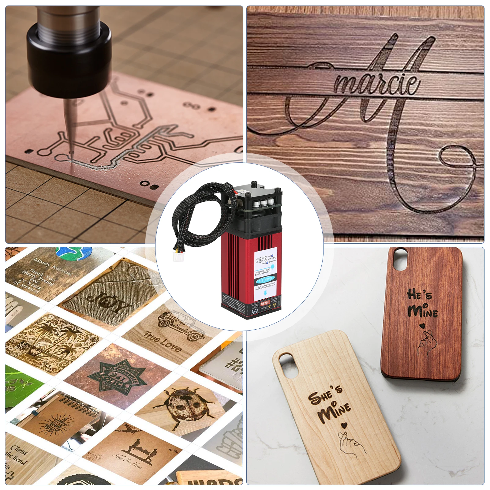 Высококачественный материал:Лазерный модуль, имеет прочный корпус из алюминиевого сплава, высокую скорость гравировки, низкое энергопотребление, стабильность, длительный срок службы.