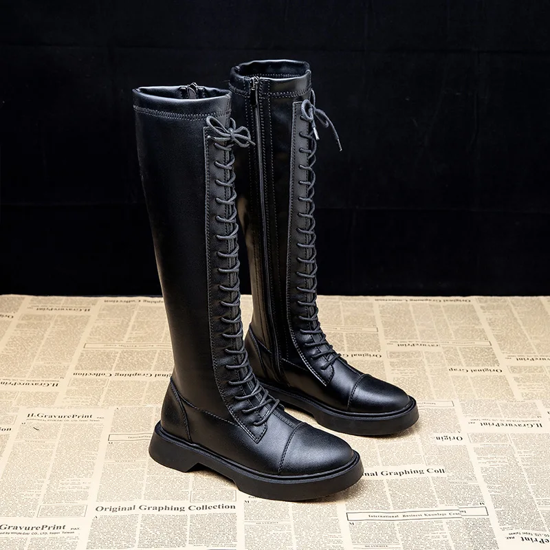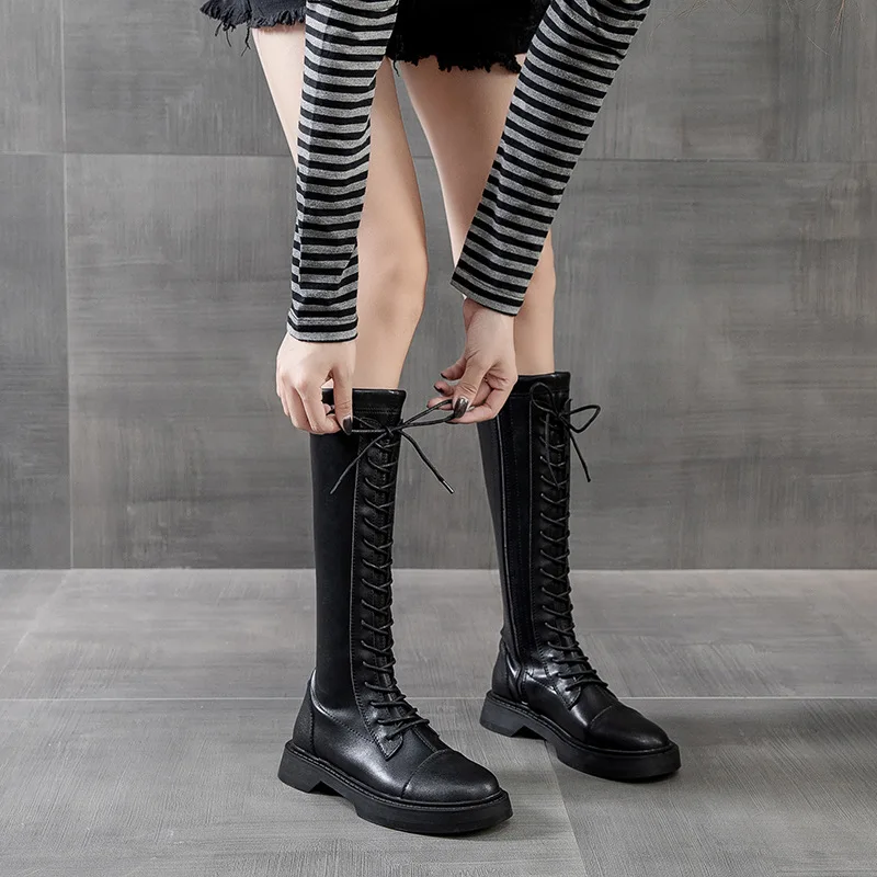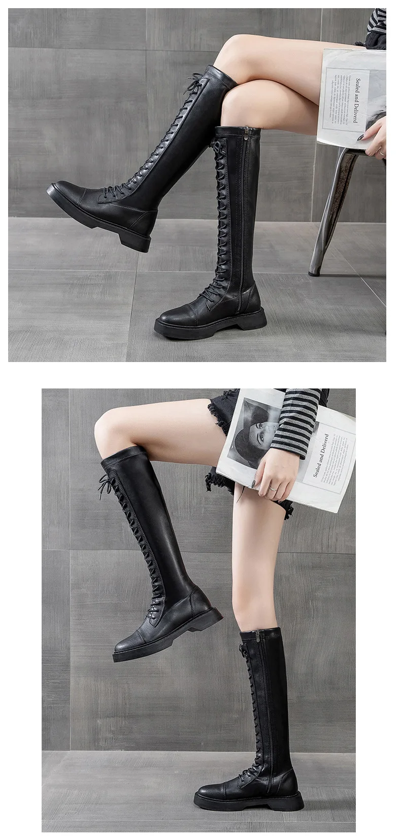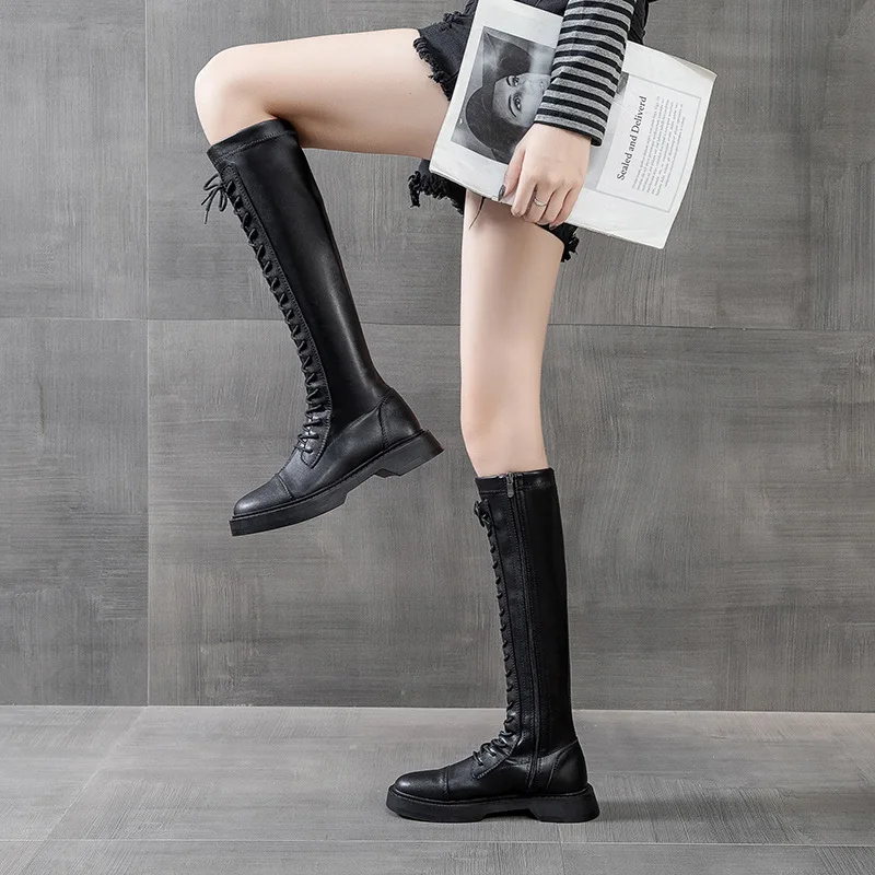Высокие сапоги женская обувь Осень-зима 2021 рыцарские кожаные высокие и тонкие - купить