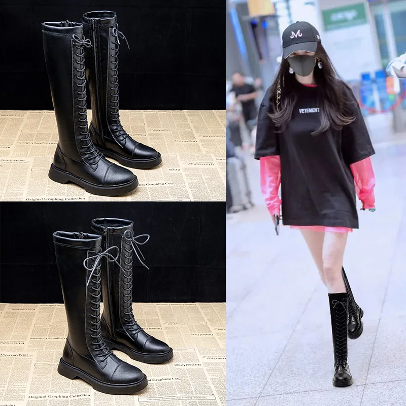 Отзывы о Высокие сапоги женская обувь Осень-зима 2021 рыцарские кожаные высокие и тонкие