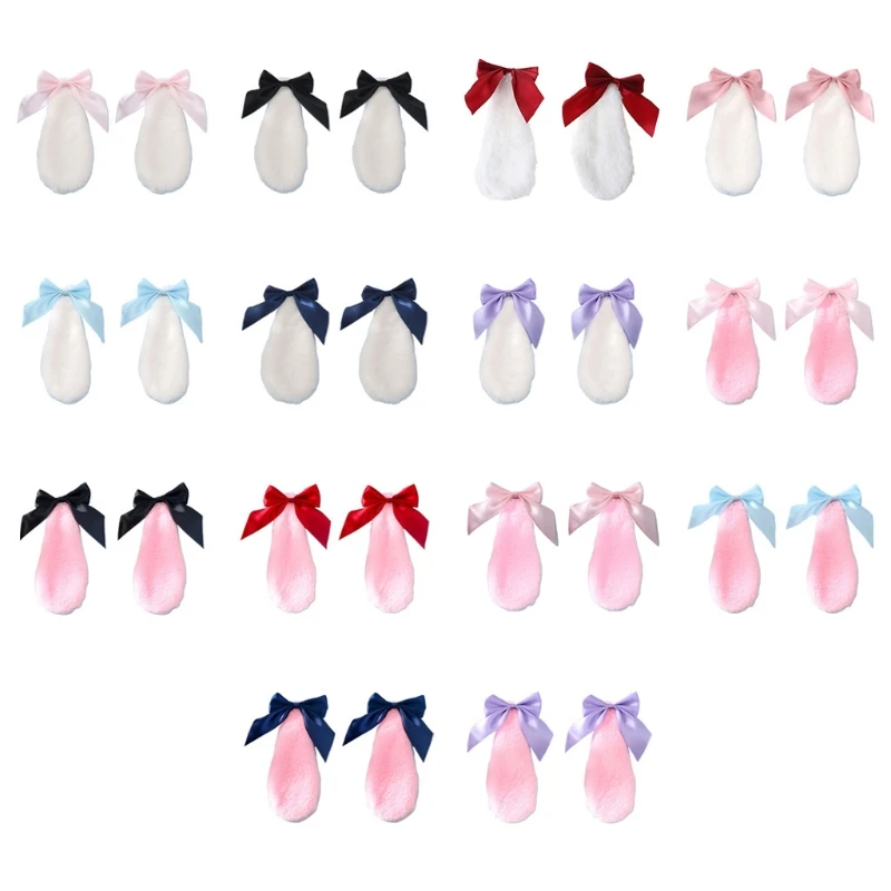 Симпатичный плюшевый кролик заячьи ушки с украшением в виде банта из ленты ярких цветов. Каждое ухо имеет металлический сплав аллигатора клип.