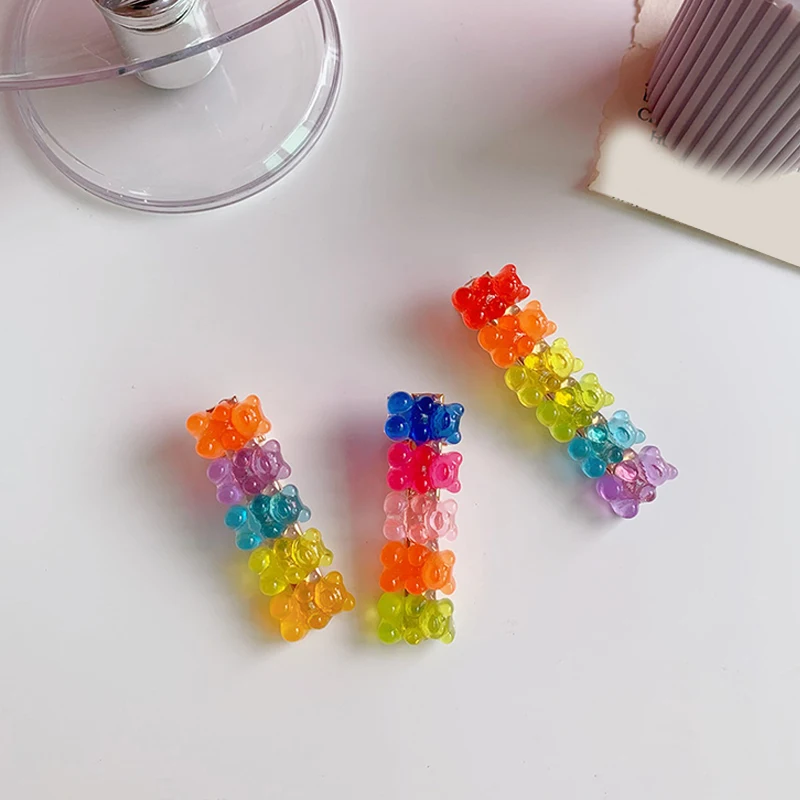 Милые заколки ярких цветов с маленьким медведем Красочные для волос маленькими - купить