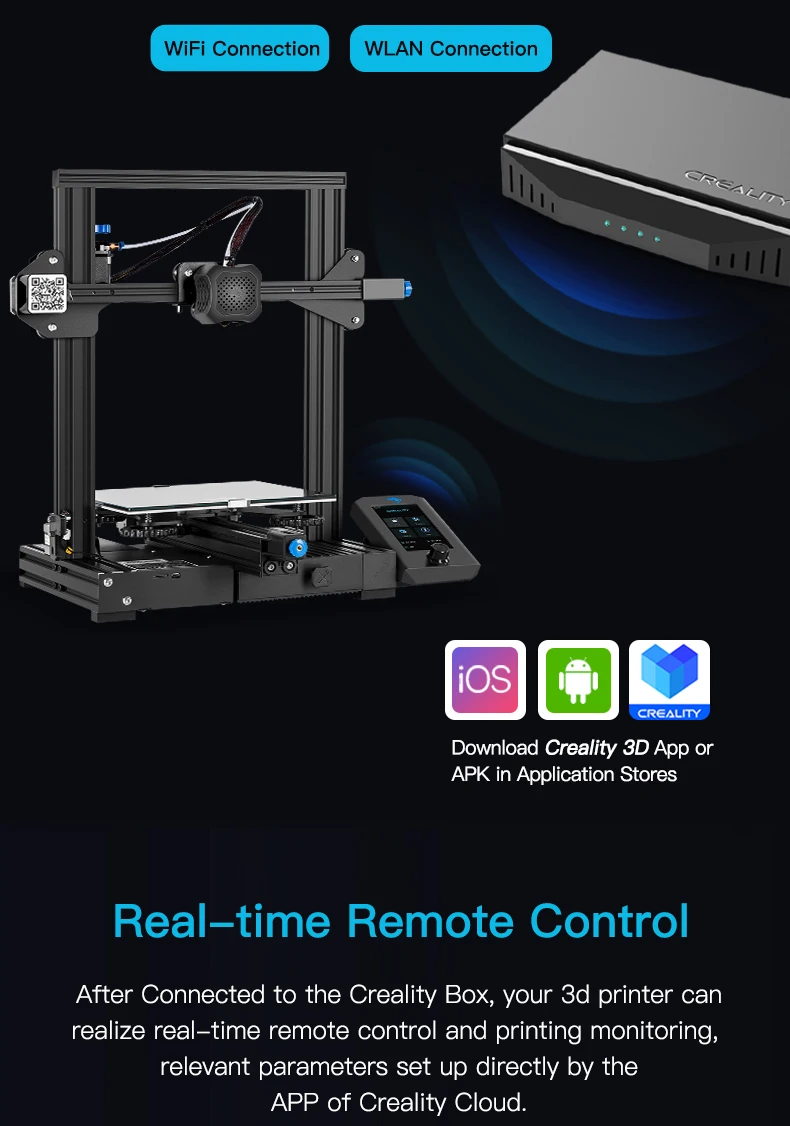 Пульт дистанционного управления в режиме реального времени:После подключения к Creality Box, ваш 3D принтер может осуществить удаленный доступ в реальном времени