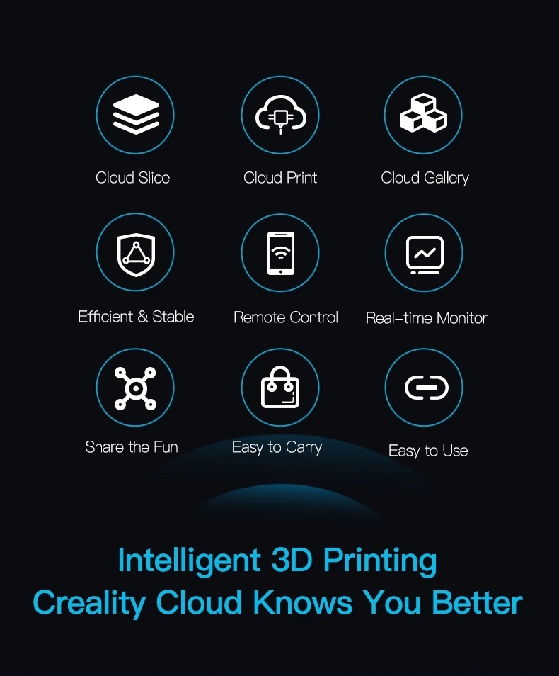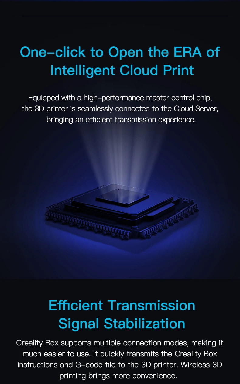 Легко подключается, не беспокойтесь о 3D принте:Подключите 3D-принтер к usb-порту на коробке Creality, и вы можете начать нарезку и печать в приложении thr Creality Cloud, которое легко начать.