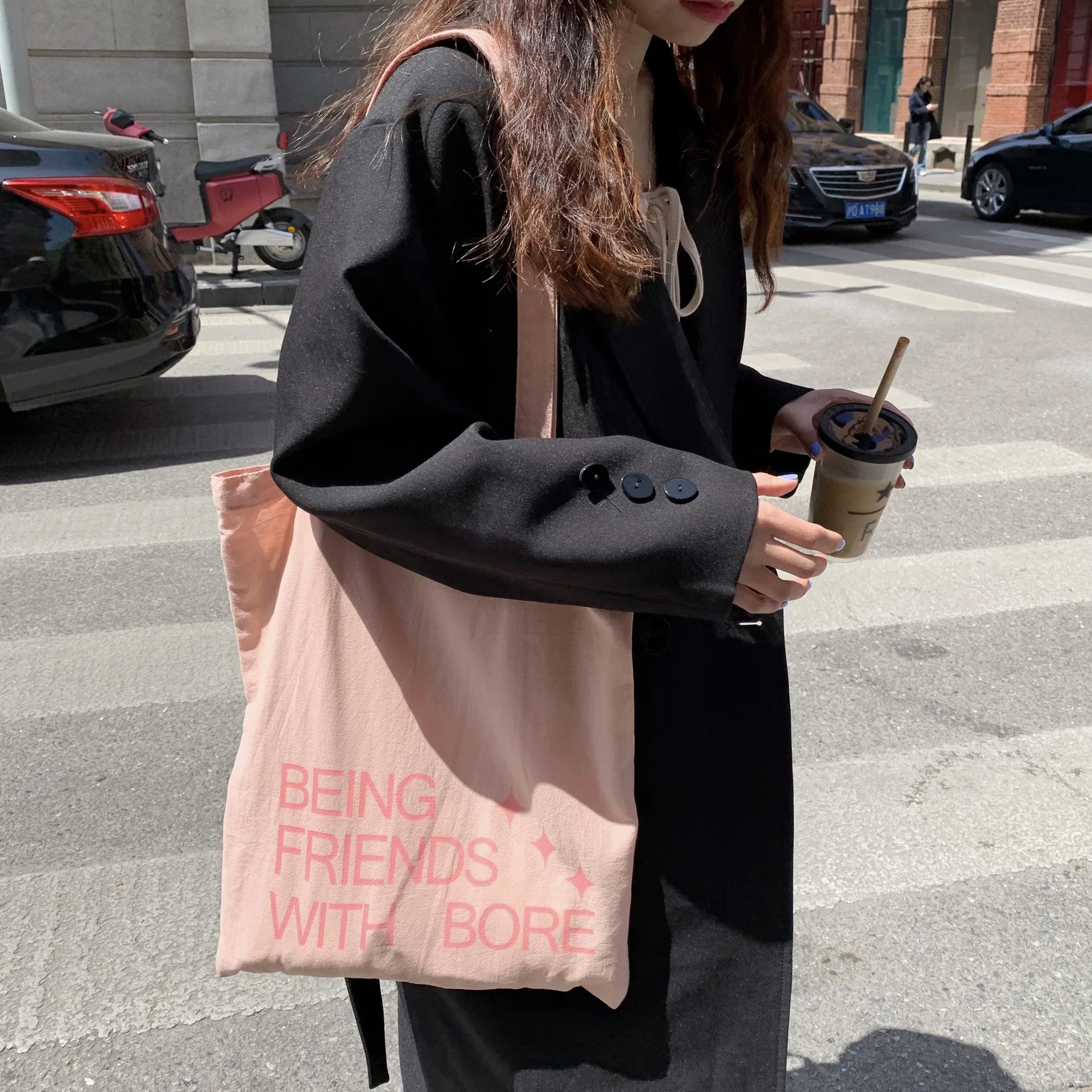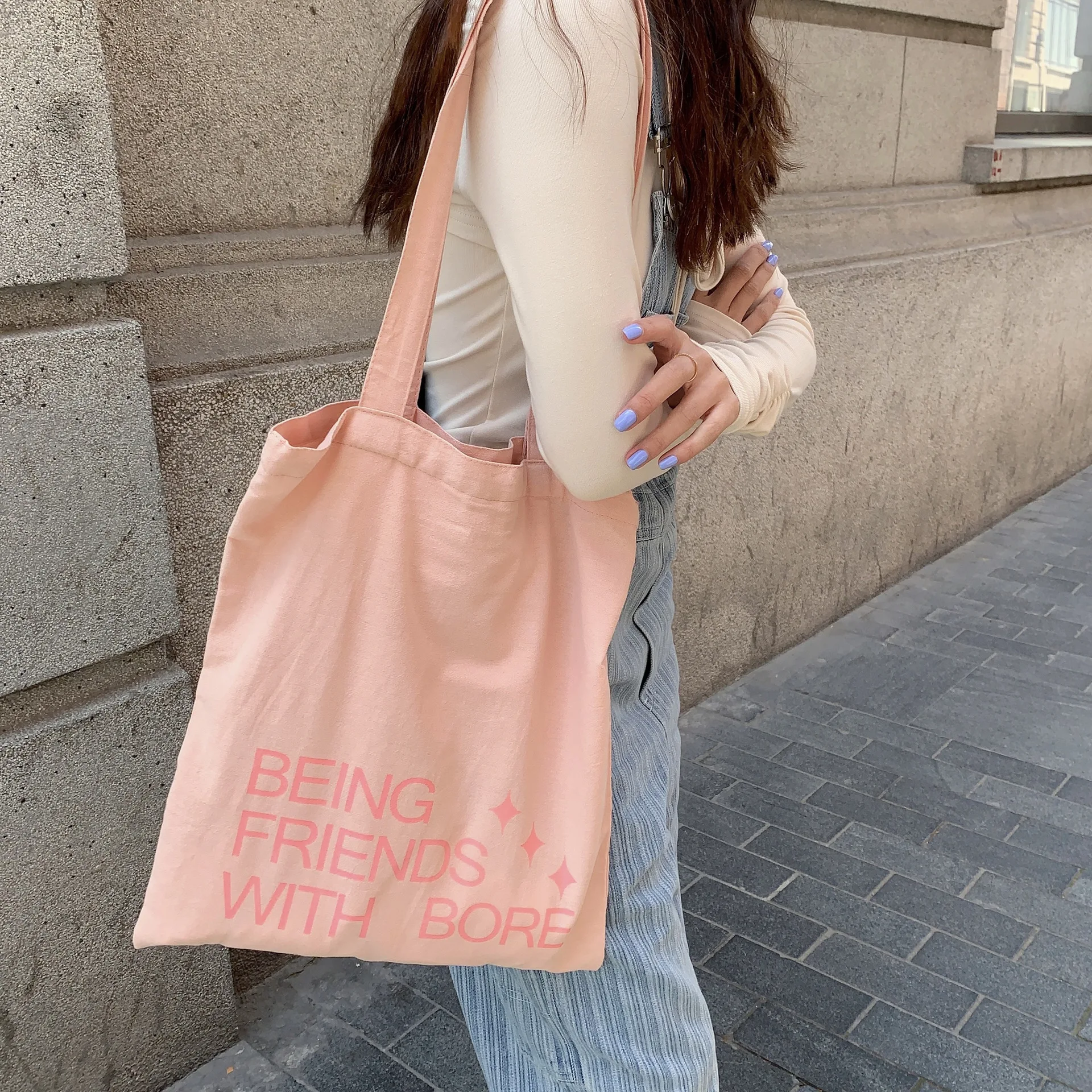 Отзывы о Повседневная холщовая женская сумка на плечо с надписью Haag хлопковая розовая