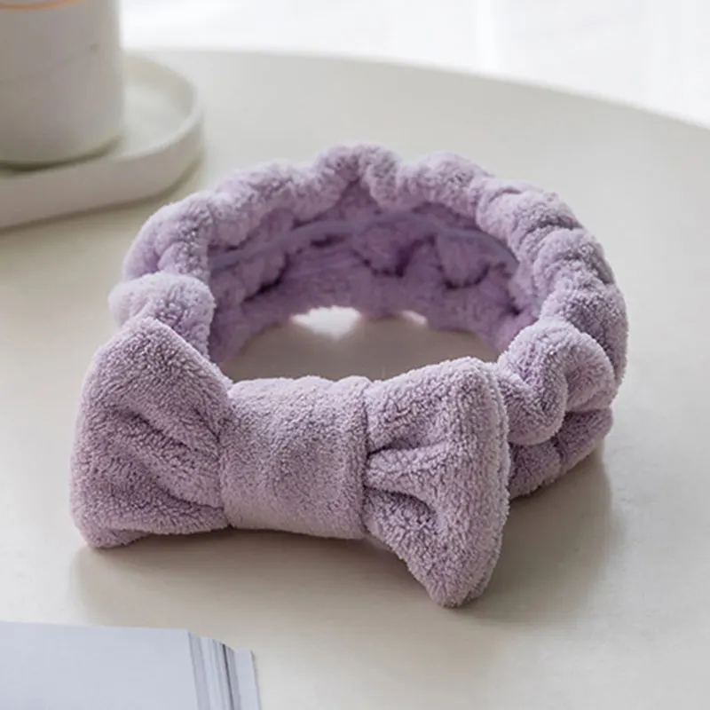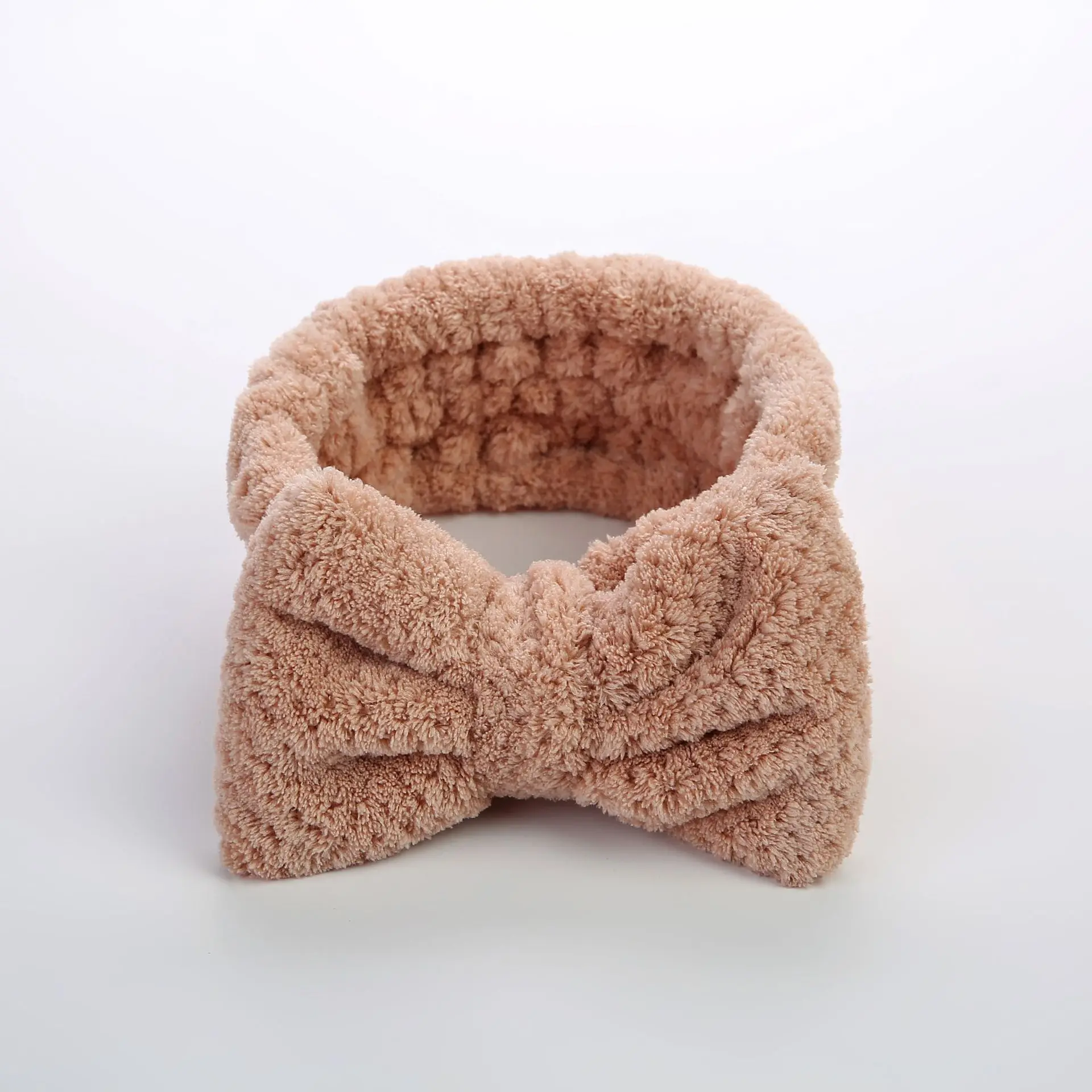 Одноцветные коралловые флисовые банты для волос, мягкие эластичные повязки для макияжа лица