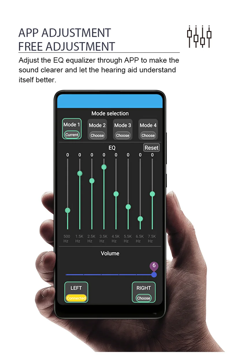 2. Это устройство поддерживает сервис программирования, вы можете подключить ваш телефон bluetooth, вниз приложение, затем вы можете программировать в соответствии с вашим уровнем слуха.