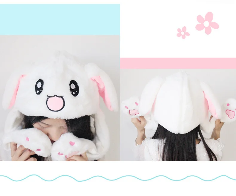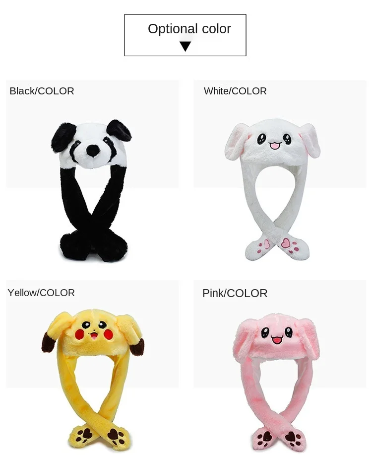 Купить Новинка 2022 женская шапка с заячьими ушками плюшевая движущимися и блеском в