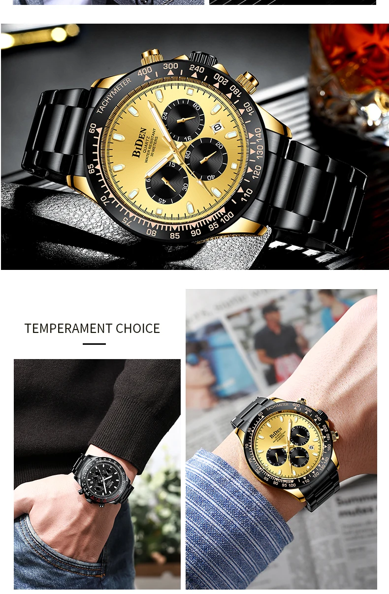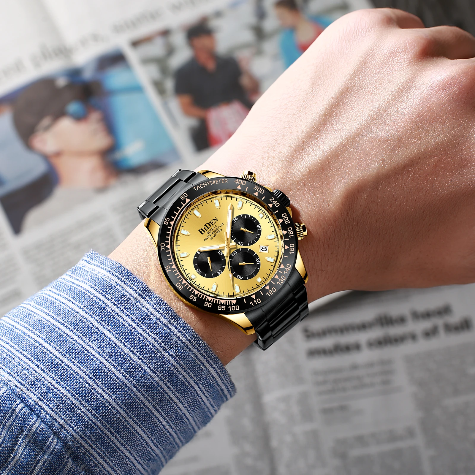 Топ мужские часы Автоматическая Дата Водонепроницаемый хронограф кварцевые часы черного золота полностью из нержавеющей стали классические часы дропшиппинг