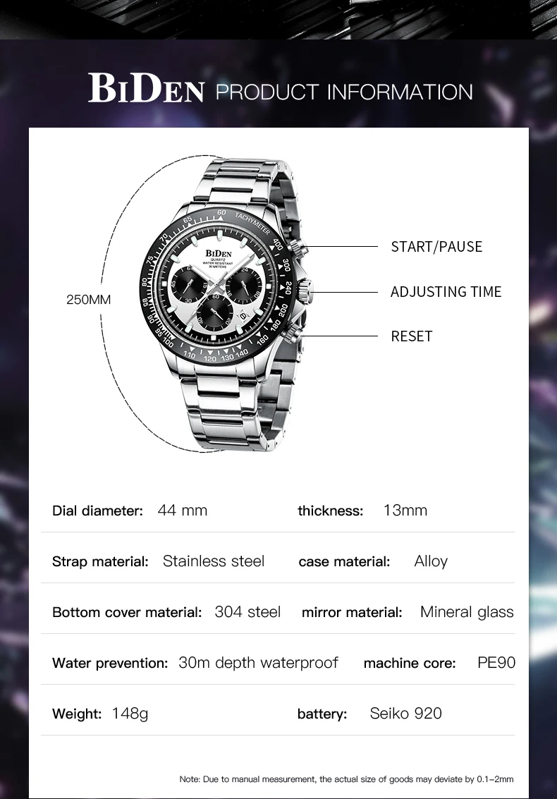 Отзывы о Мужские водонепроницаемые кварцевые часы с хронографом из нержавеющей стали -