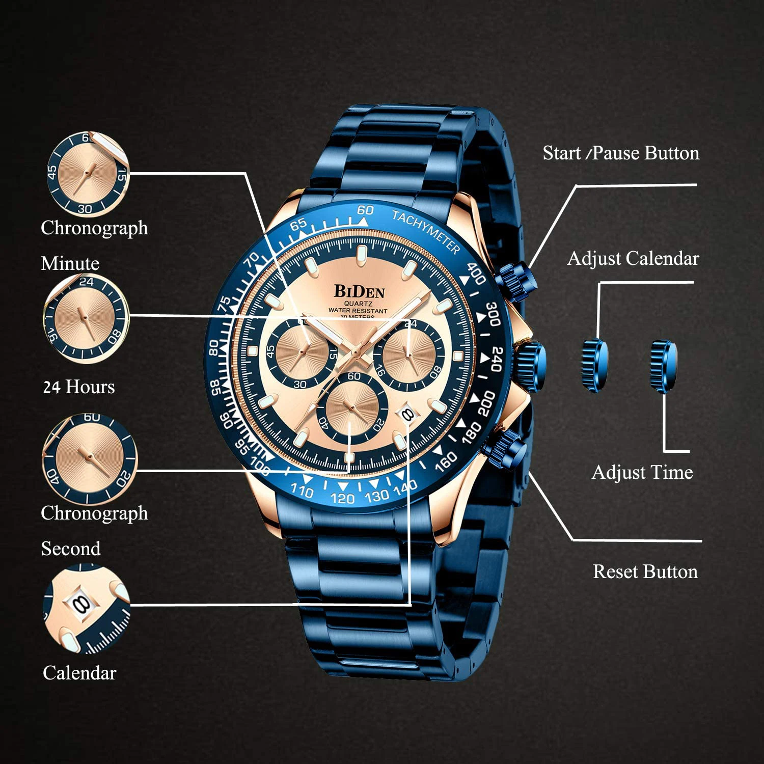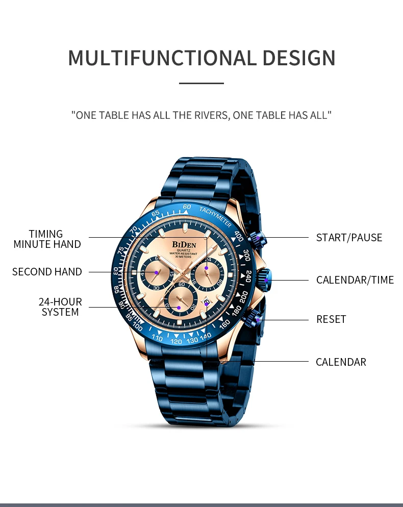 Мужские водонепроницаемые кварцевые часы с хронографом из нержавеющей стали - - купить