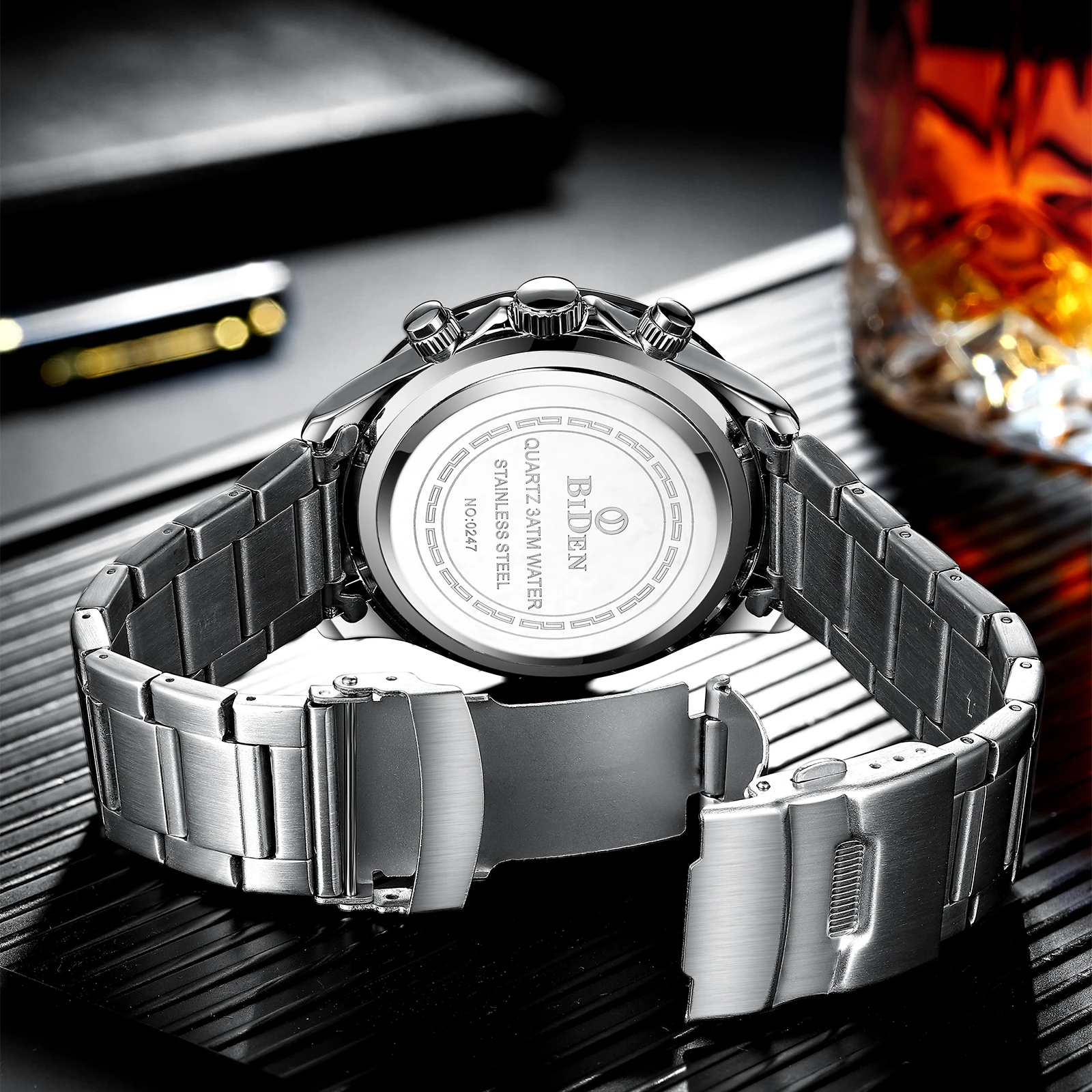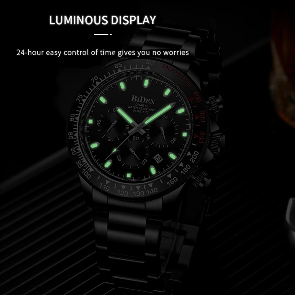 Купить Мужские водонепроницаемые кварцевые часы с хронографом из нержавеющей стали -