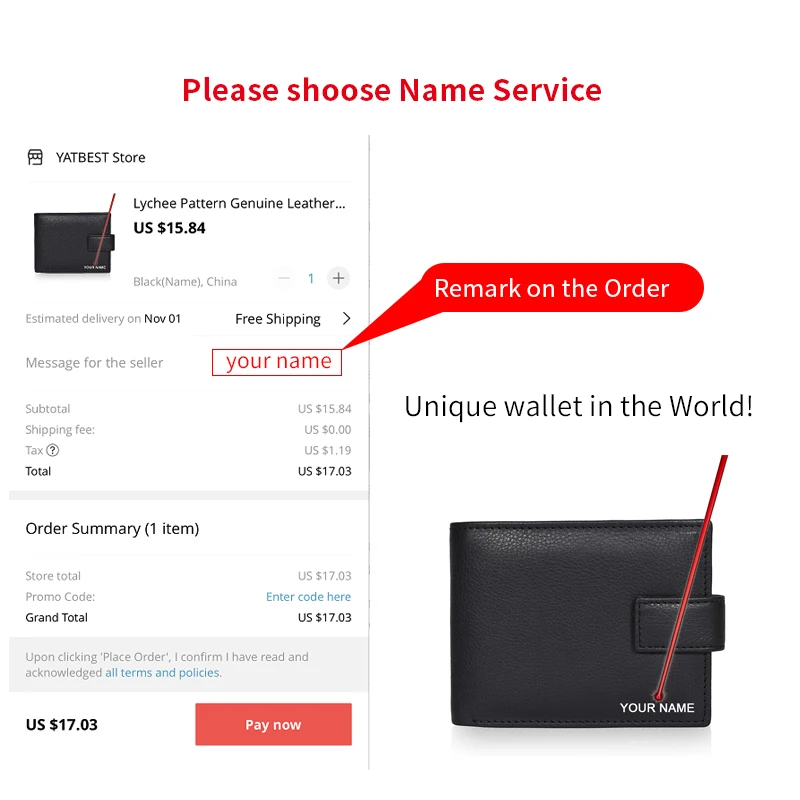 Пожалуйста, укажите свое имя в течение 24 часов или мы добавим имя получателя на бумажнике.