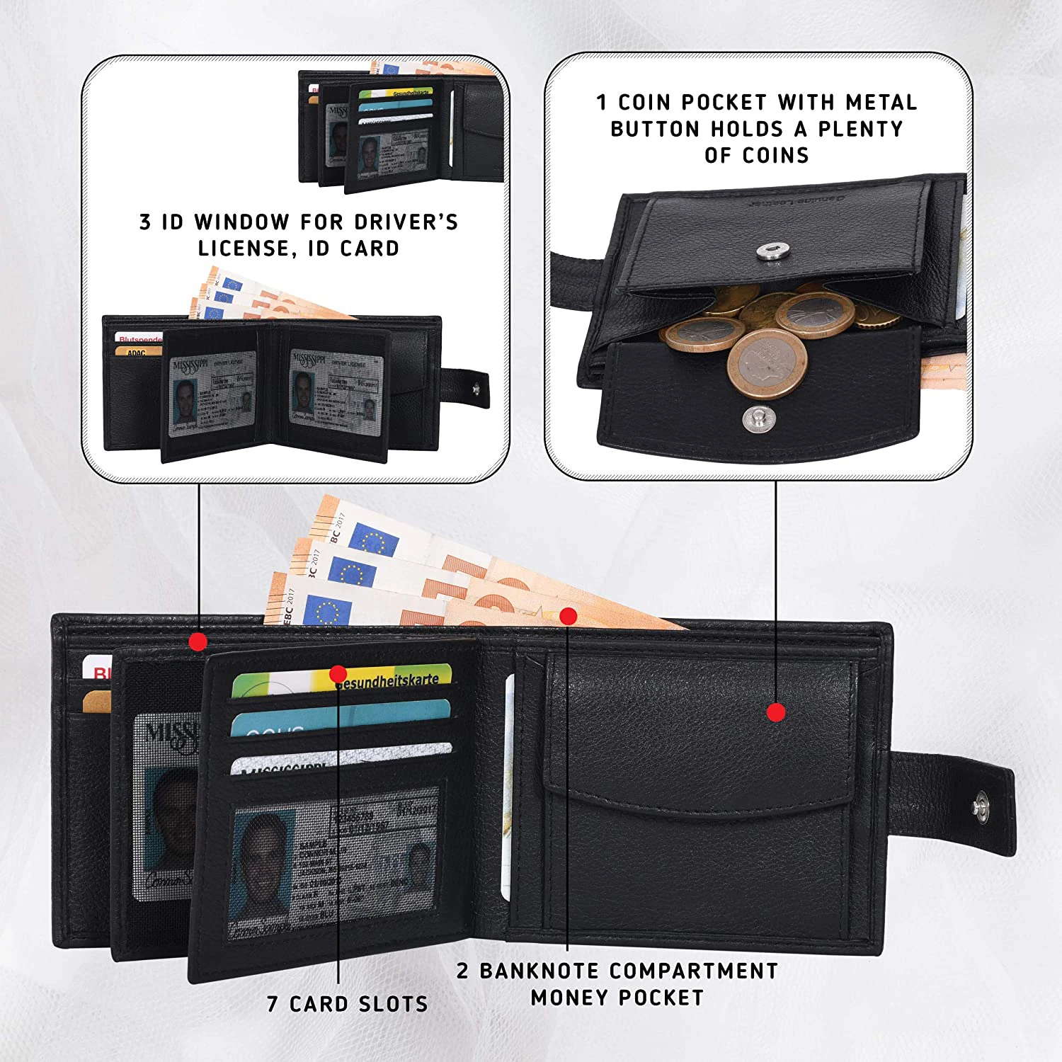 Кошелек имеет великолепное хранилище и размеры 12 см X 9 см X 2 см. Кожаный бумажник имеет 8 отделений для карт, 3 окна для хранения других документов, 2 кармана для денег и карман для монет для мгновенного доступа во время путешествия.
