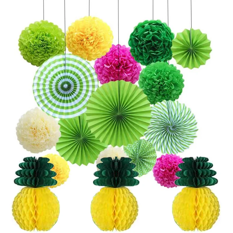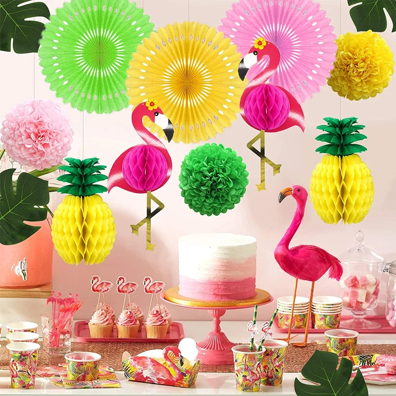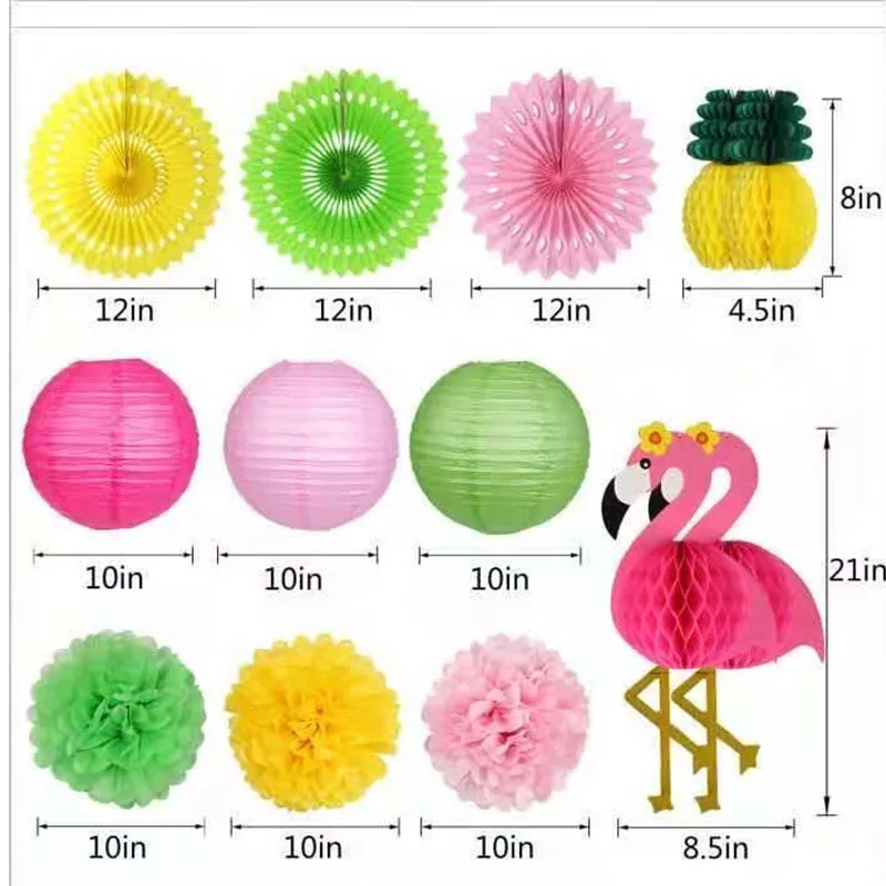 Купить Набор Гавайских фонарей розового фламинго тропический ананас сотовая бумага