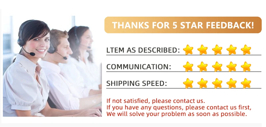 1. Ваше подтверждение будет высоко оценено после получения товаров. Как только вы получили товар, надеемся, что вы оставите нам положительный отзывы (4 или 5 звезд).
