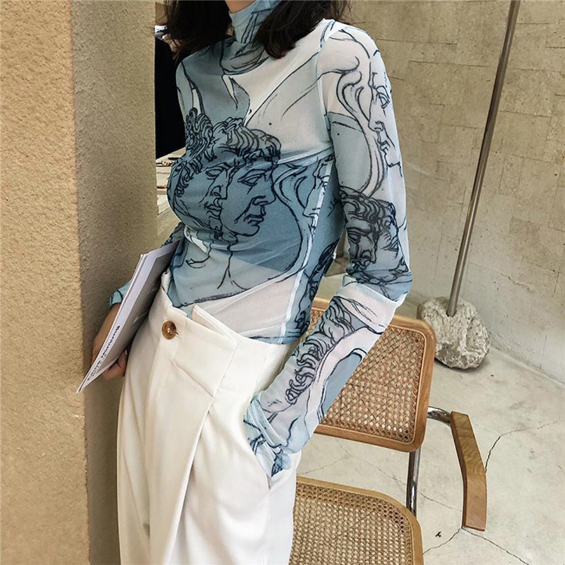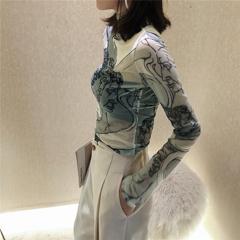 Женская Сетчатая футболка с цветочным принтом винтажные прозрачные белые топы - купить