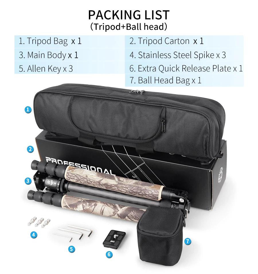 Packing list of tripod and ball head: