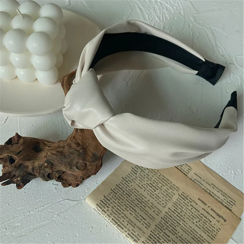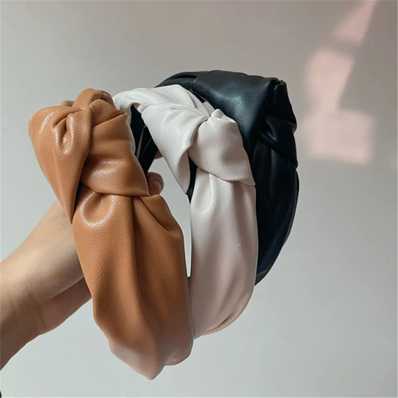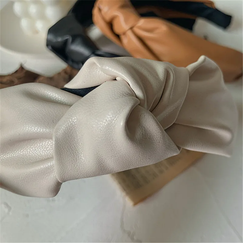 Отзывы о Новые кожаные женские ободки для волос одноцветные завязанные широкие модные