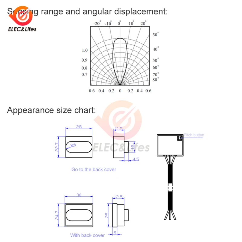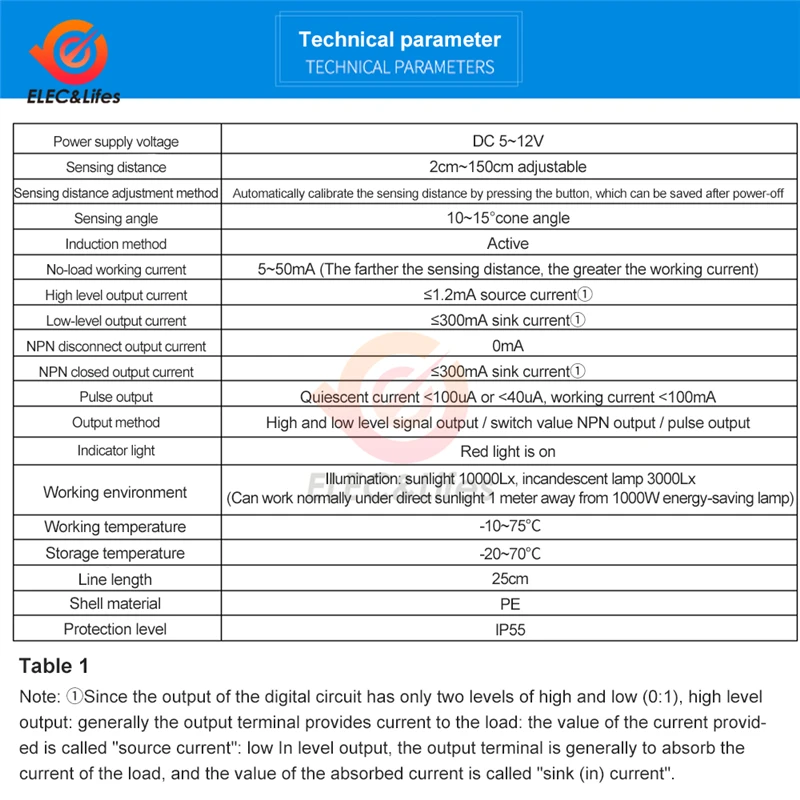 Working environment: Illumination: sunlight 10000Lx, incandescent lamp 3000Lx (can work normally under direct sunlight 1 meter away from 1000W energy-saving lamp)