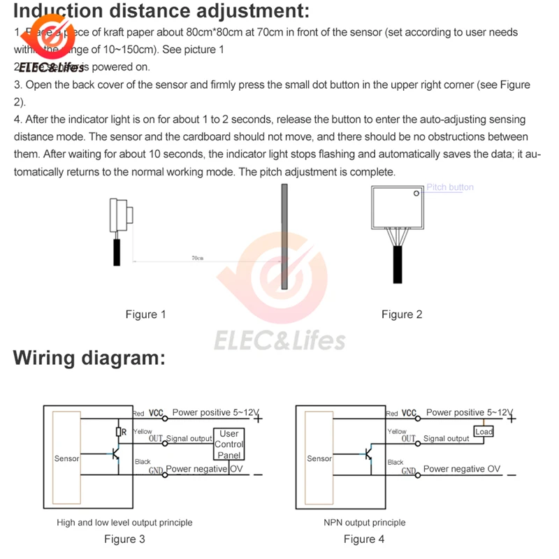 Sensing distance adjustment method: press the button to automatically calibrate the sensing distance, which can be saved after power-off