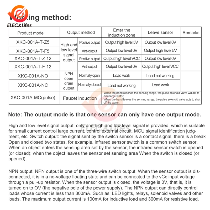 No-load working current: 5~50mA (the longer the sensing distance, the greater the working current)