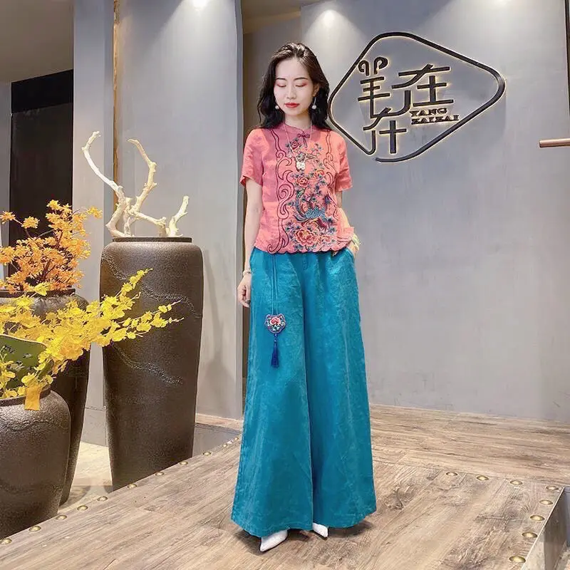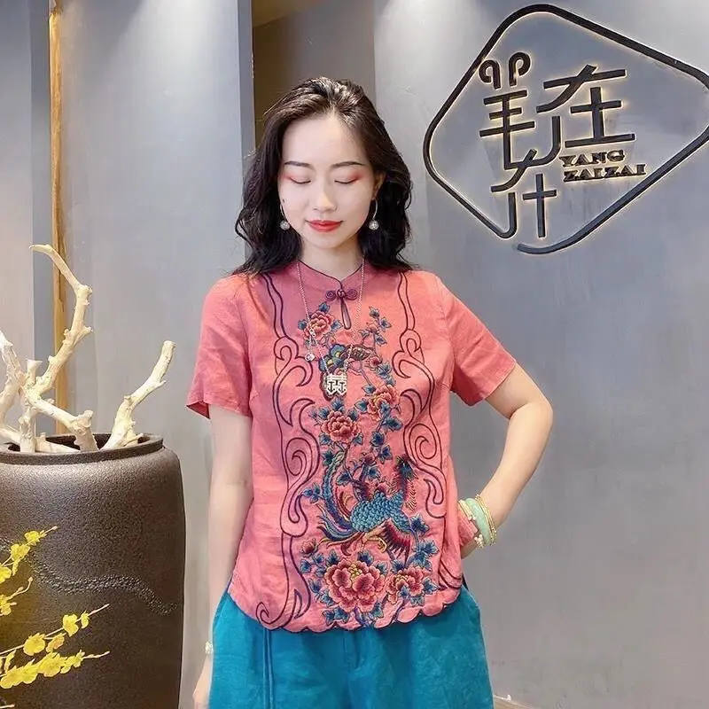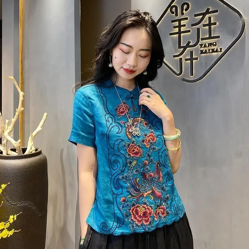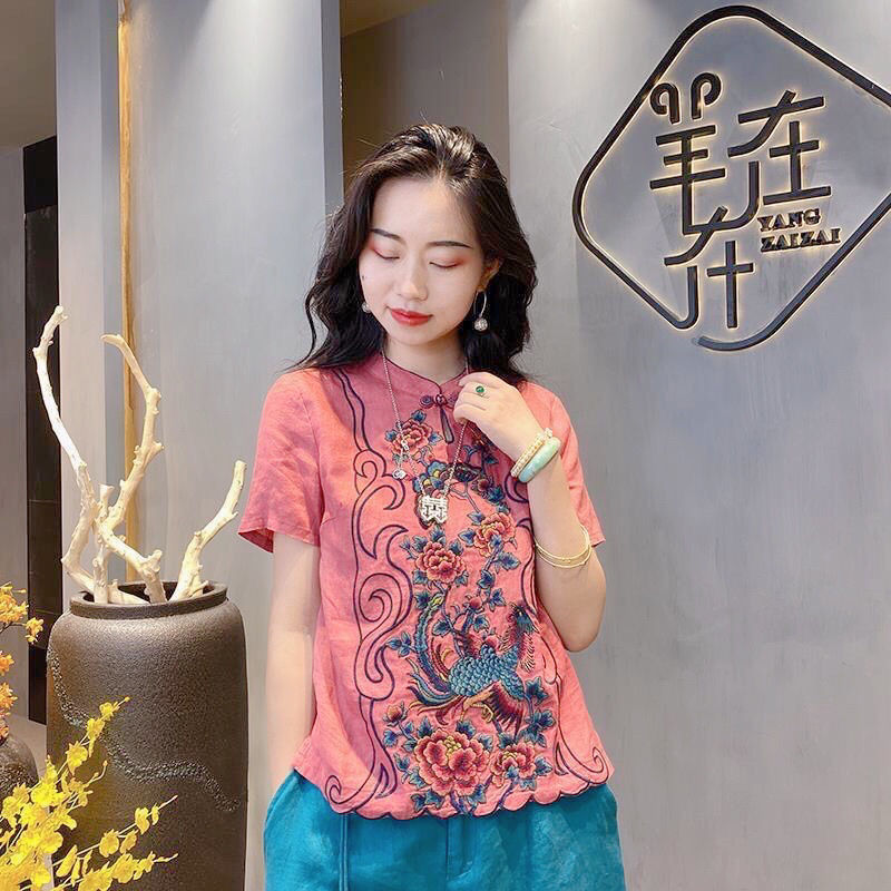 Летняя женская блузка в китайском национальном стиле из хлопка и льна - купить