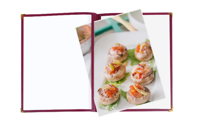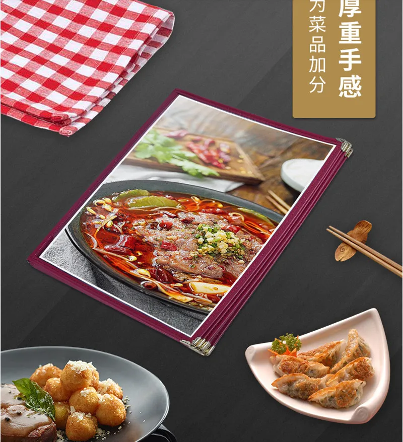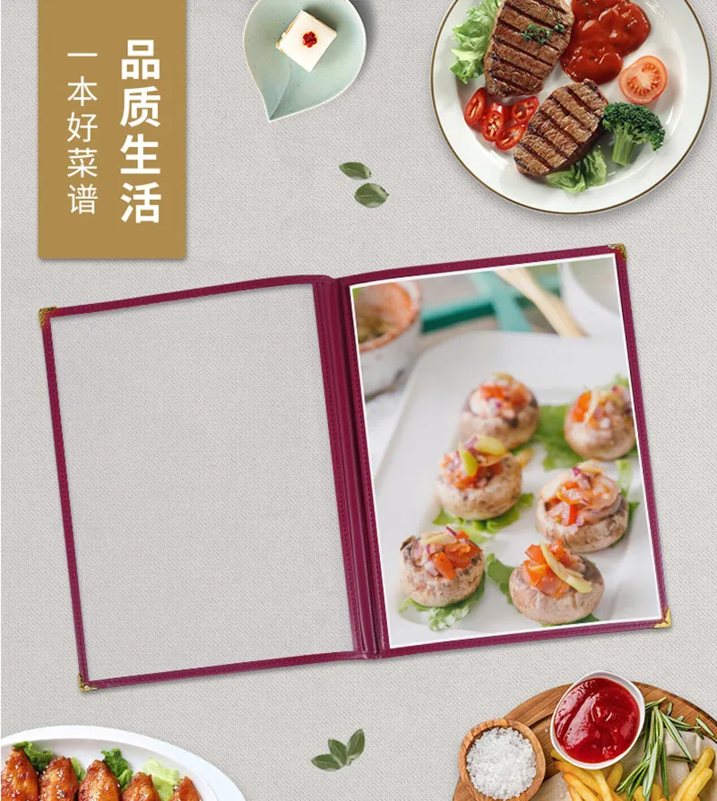 Название продукта: A4 двухсторонние ресторанные пищевые кафе ПВХ Чехлы для меню книга Складная подходит 8,5x11 дюймов бумажный держатель для меню рамка