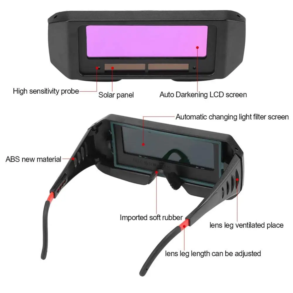 Автоматические переменные Фотоэлектрические сварочные очки Provent ультрафиолетовое инфракрасное излучение блики защитные очкиОсобенности:1. Высокочувствительный зонд обладает высокой эффективностью работы, и эксперимент доказывает, что эта скорость преобразования не наносит вреда глазам.2. Экран автоматического затемнения при генерации Дуги экран затемнения затемняется в обычный момент, а когда дуга исчезает, экран затемнения возвращается в нормальное состояние.3. В соответствии с потребностями разных людей, мы можем регулировать длину ножек очков.4. Защита от ультрафиолета, инфракрасного излучения, антибликов, не прилипает к шлаку.5. Износ ушей, износ головы может переключаться между собой.Описание:1. Линзы противоударные, стойкие к истиранию, ударопрочные, долговечные в использовании, отлично подходят для сварки.2. Эти солнечные самозатемняющиеся сварочные очки изготовлены из высококачественного поликарбоната, прочные и долговечные в использовании.Характеристики:Название продукта: автоматические очки для глазМатериал: ПКЦвет: черныйРазмер: 140x40x55 мм/5,51x1,57x2,17 дюймаКоэффициент пропускания УФ: <0.0001% (210-365nm)Коэффициент инфракрасного пропускания: <0.01% (780-нм)Рабочая температура: 10 ° C ~ + 60 ° CСиликон для носа: зеркальная ножка с резиновым покрытиемВремя отклика: 0,5 мсВремя восстановления: 0,3-0,7 мс, темная точка 3/11Информация посылка:Размер посылка: 165x70x50 мм/6,50x2,76x1,97 дюймаВес посылка: 55 г/1,94 унцииПосылка1 х автоматические очки для глаз1 х резинкаПримечания:1. Пожалуйста, снимите защитную пленку перед использованием.2. Возможны отклонения в 0-3 см из-за ручного измерения.3. Из-за различий в мониторах и световых эффектах фактический цвет изделия может немного отличаться от цвета, показанного на фотографиях.