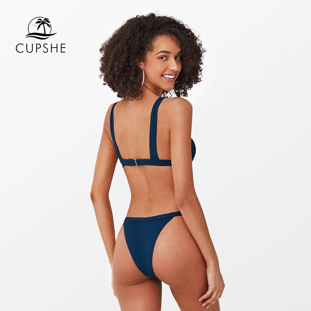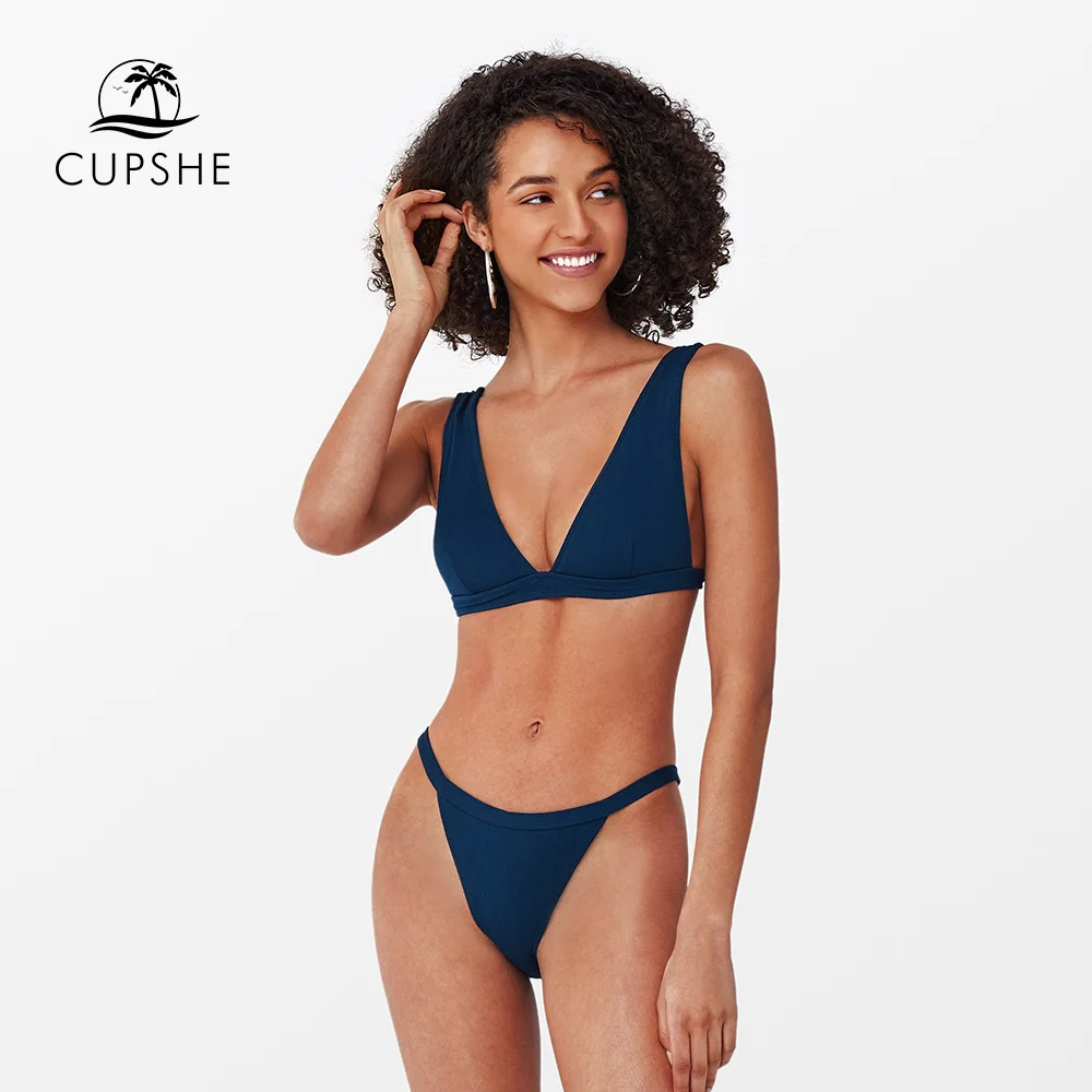 Купить Женский купальник-бикини CUPSHE темно-синий купальник с v-образным вырезом и низкой