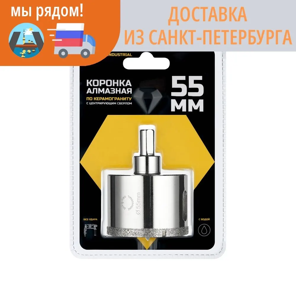 Купить Алмазная коронка по керамограниту плитке кафелю 55 мм с центром Diamond Industrial - купить