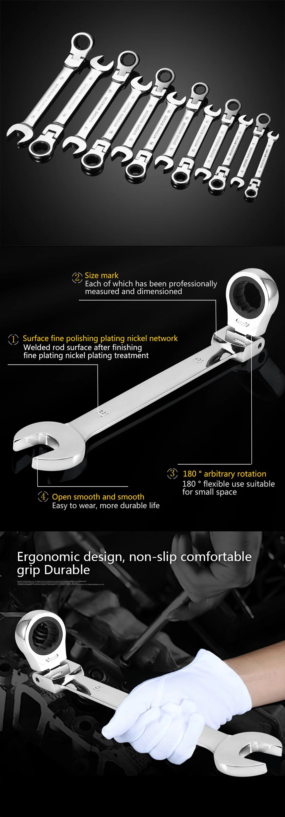 3. Ручка гаечного ключа: с нескользящей ручкой для удобного, эргономичного захвата при использовании.
